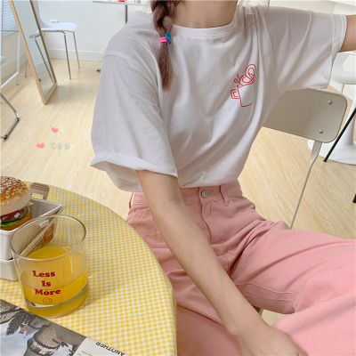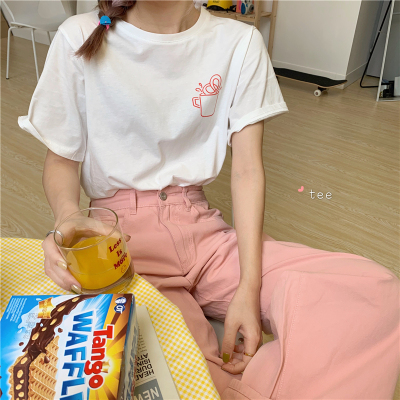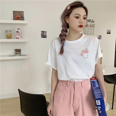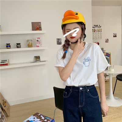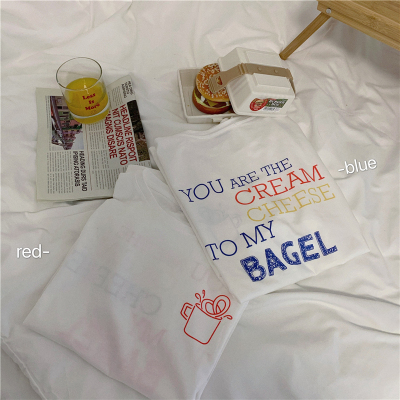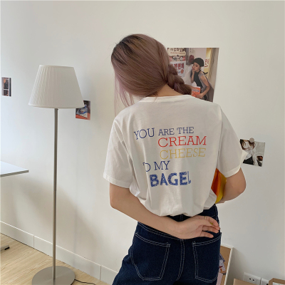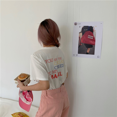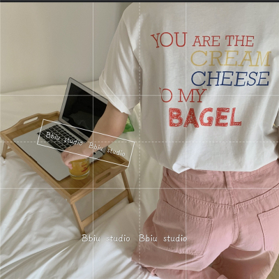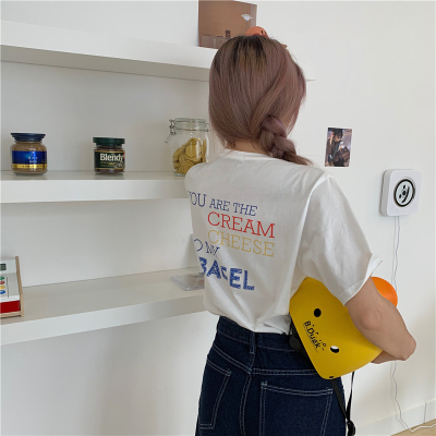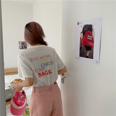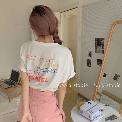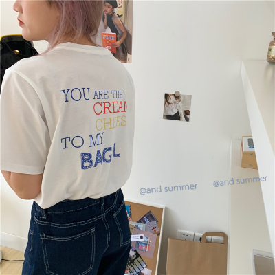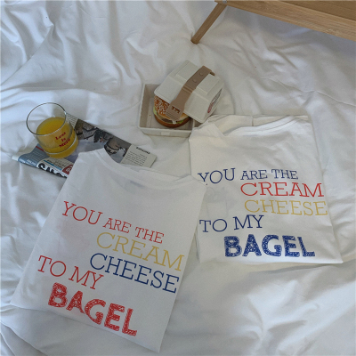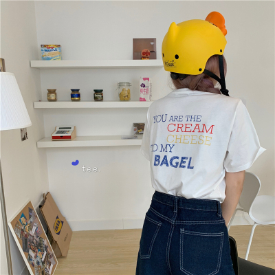 Fun cartoon letter printed short sleeve shirt