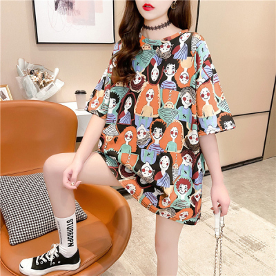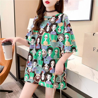 Real shot medium length short sleeve T-shirt women's 2021 spring / summer new top / Fashion bottom coat