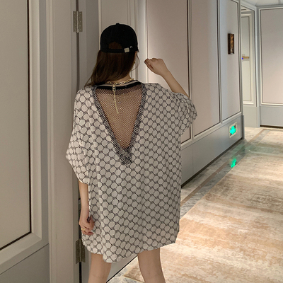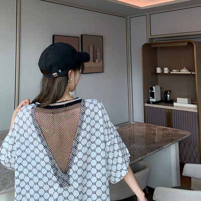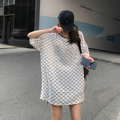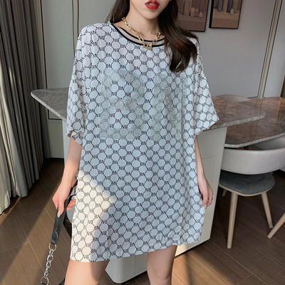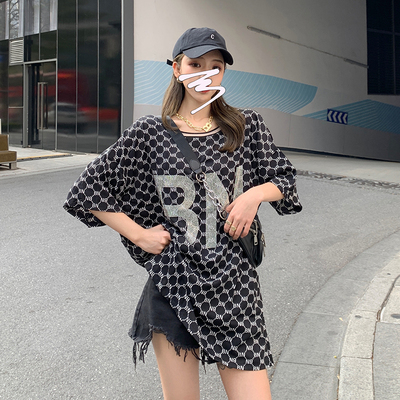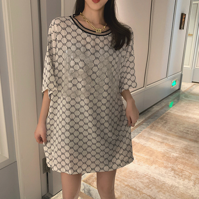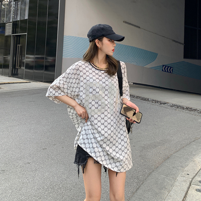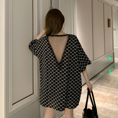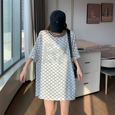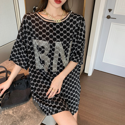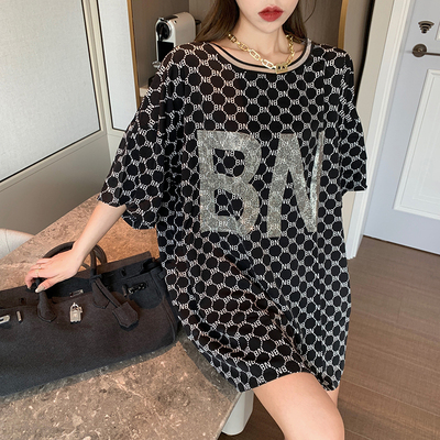 實拍大版燙鑽港風短袖恤韓版夏中長款寬鬆大碼女上衣