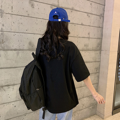 Real shot new heavy industry hot drill bear letter short sleeve T-shirt women's Korean version loose half sleeve top bottom coat