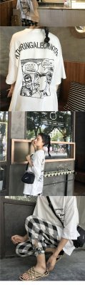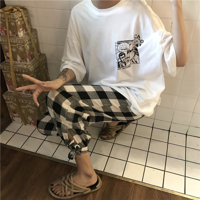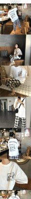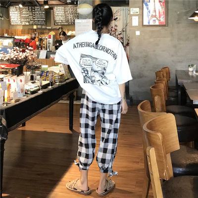Printed short sleeve T-shirt women's summer new Korean loose large Plaid casual pants fashion two piece suit women