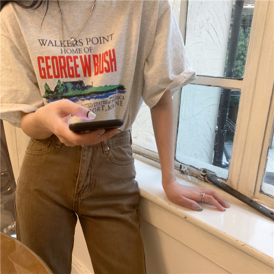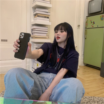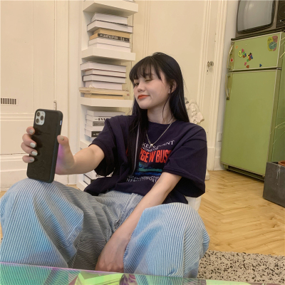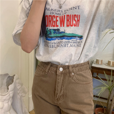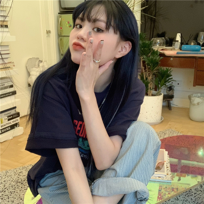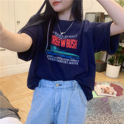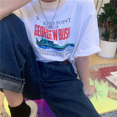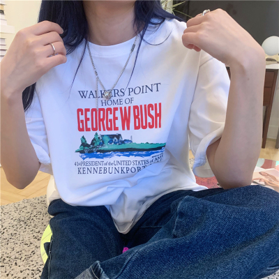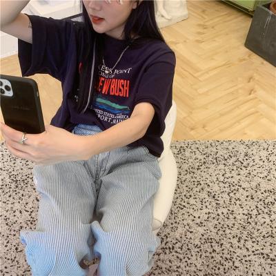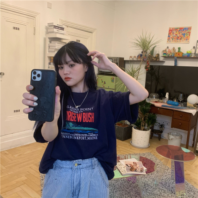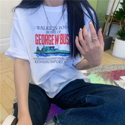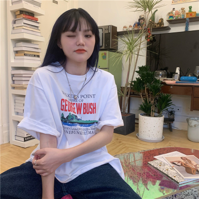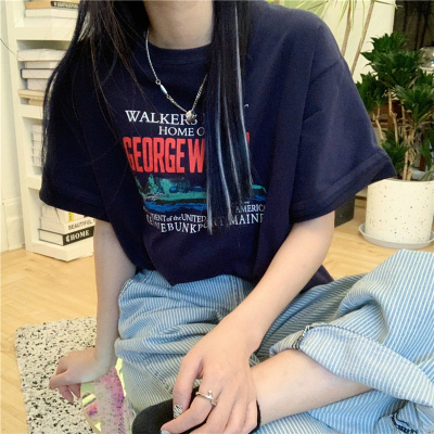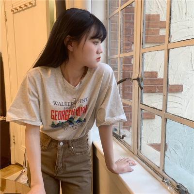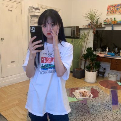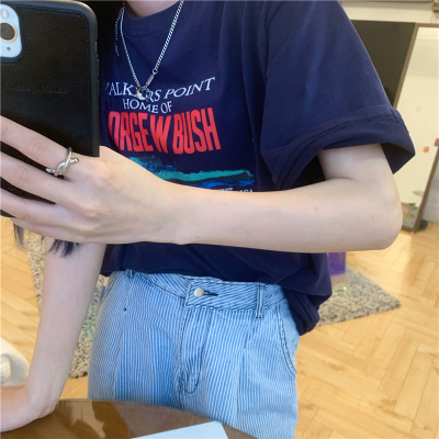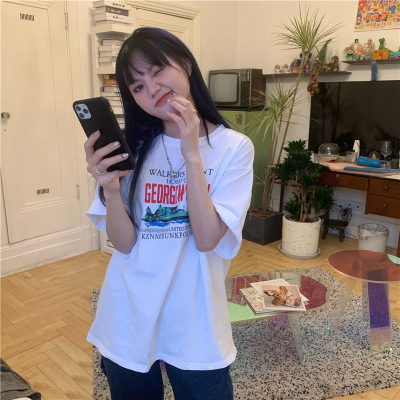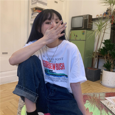Real price 2021 new Korean printing loose and thin round neck short sleeve T-shirt for women