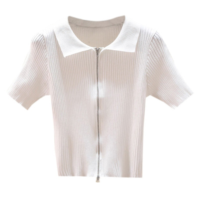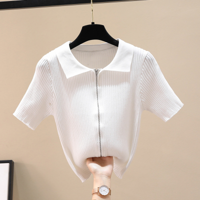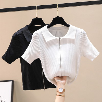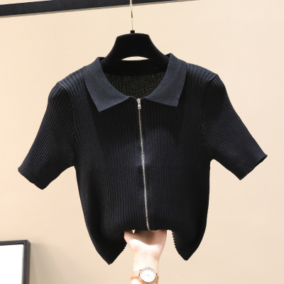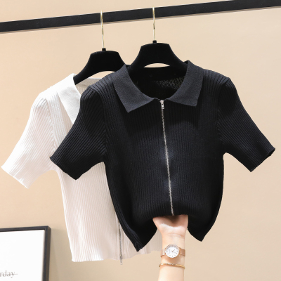 Real Korean version small sexy open navel zipper T-shirt short sleeve T-shirt