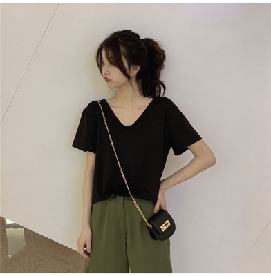 Official figure White V-Neck T-shirt women's fashion short sleeve 2020 summer new Korean version