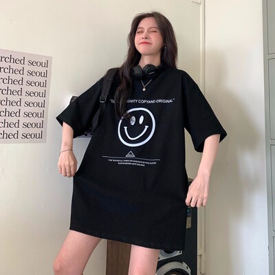 Milk silk short sleeve t-shirt female student Korean version loose medium length couple's big size shirt missing summer top