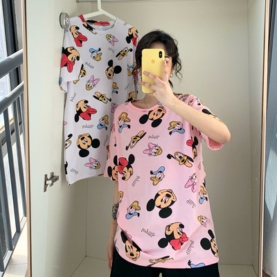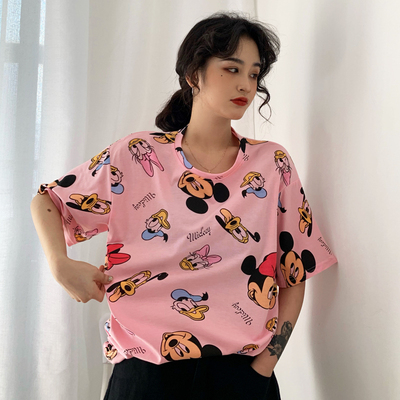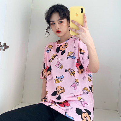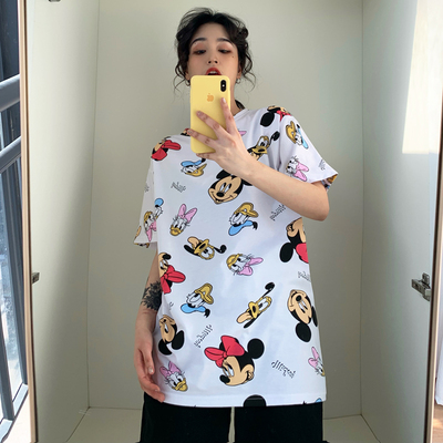 Real price super hot CEC Mickey Mouse cartoon top women's 2021 summer big edition long student college style T-shirt
