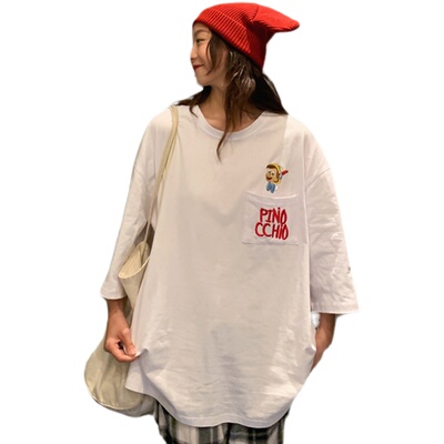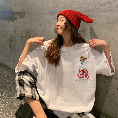 Real shooting summer personalized cartoon printed t-shirt female short sleeve round neck top