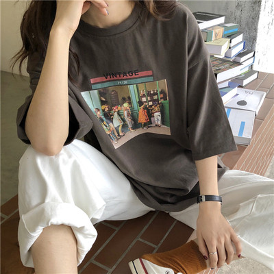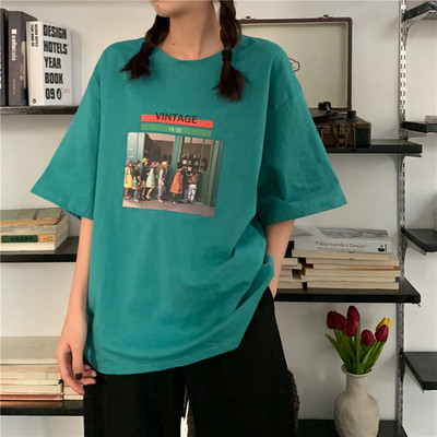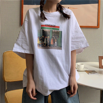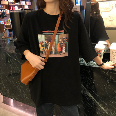 Cotton short sleeve t-shirt female summer new Korean ins fashion student loose net red large CEC medium length T-shirt