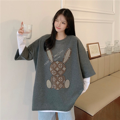 Real shot of new Korean heavy industry hot diamond rabbit Euro American fashion brand short sleeve T-shirt