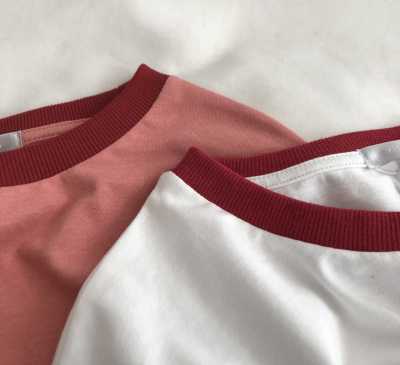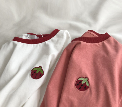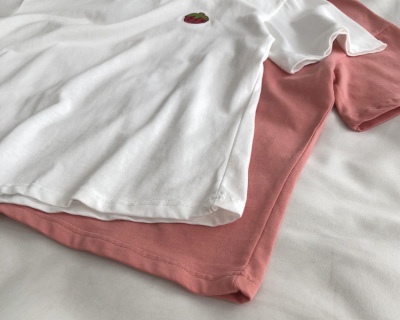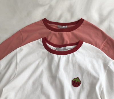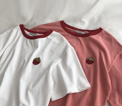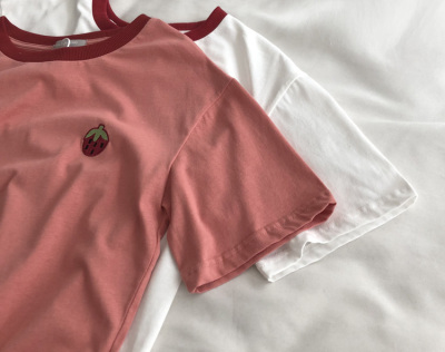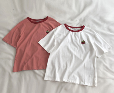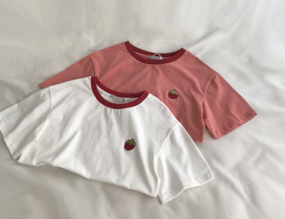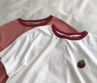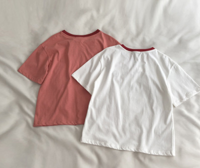 Guantu cotton embroidered T-shirt color matching Short Sleeve T Korean casual top women's summer