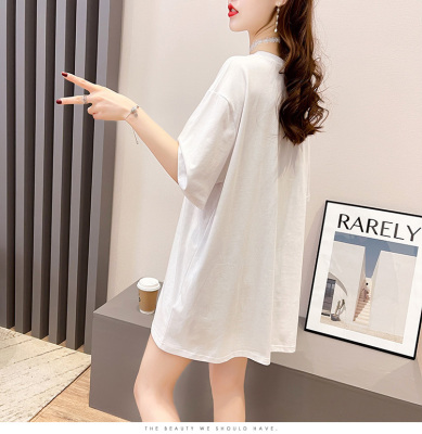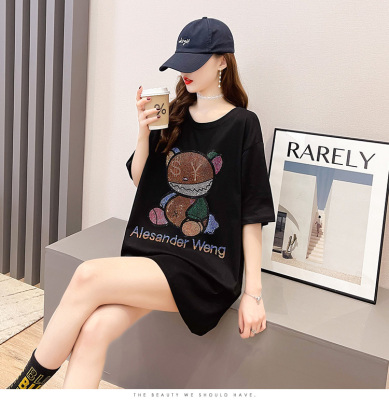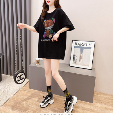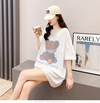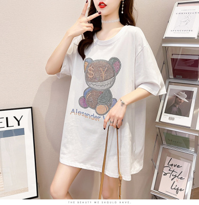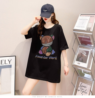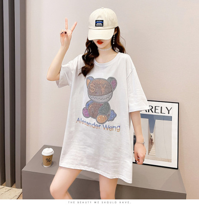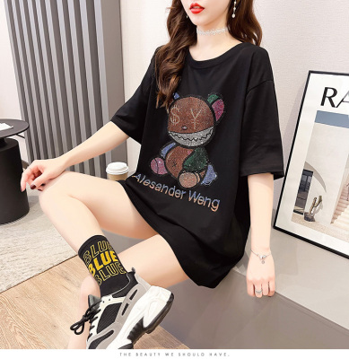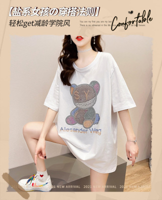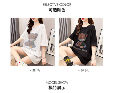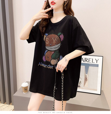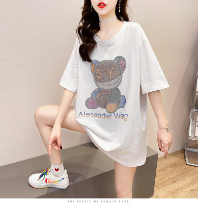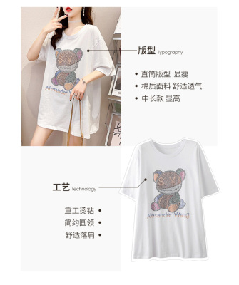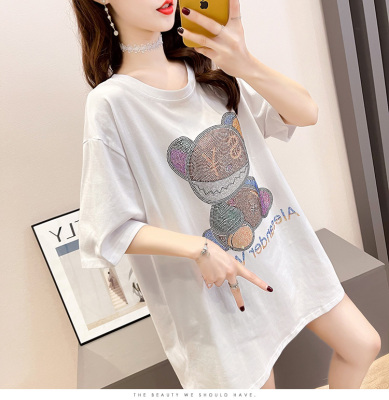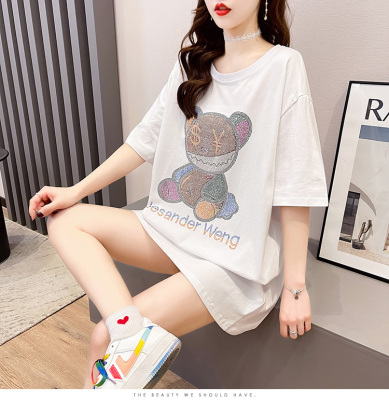 Real shooting 65 / 35 cotton cartoon hot drilling loose short sleeve T-shirt women's fashion 2021 new summer Korean clothes