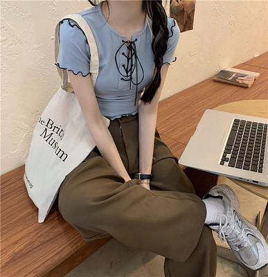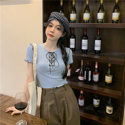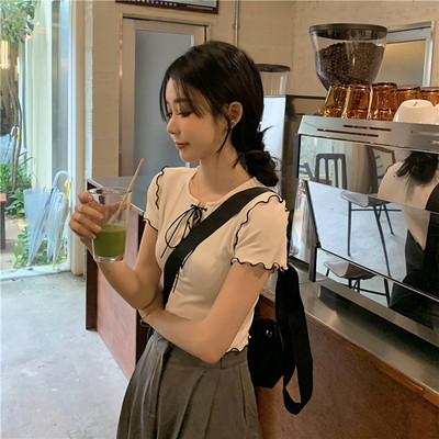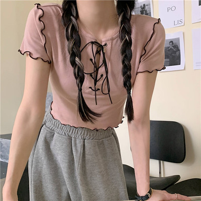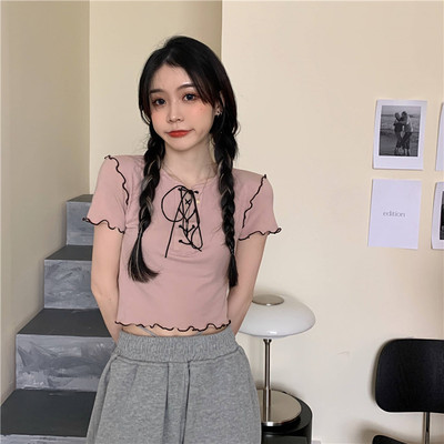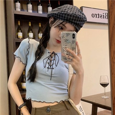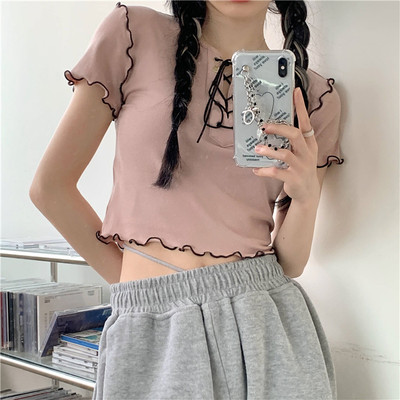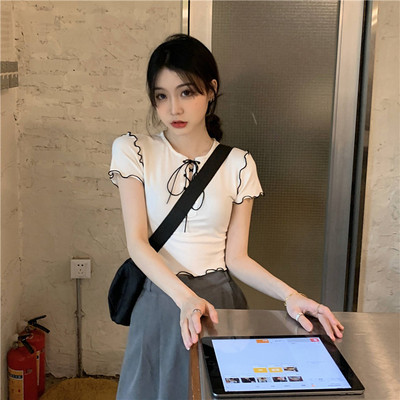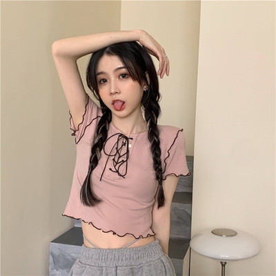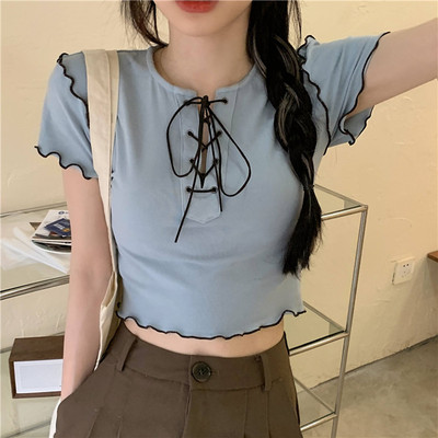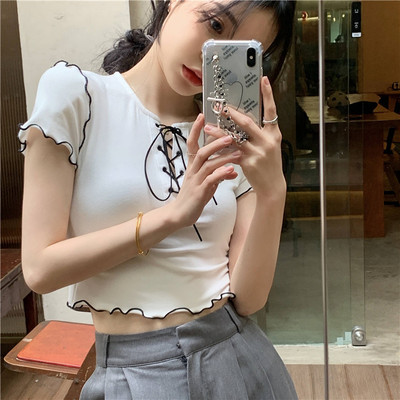 Real shot real price show thin bandage design short T-shirt