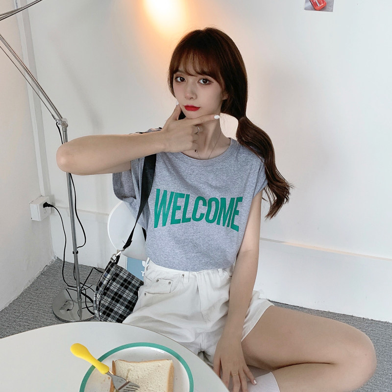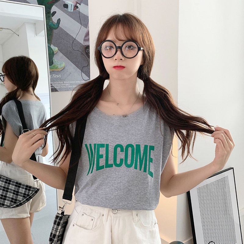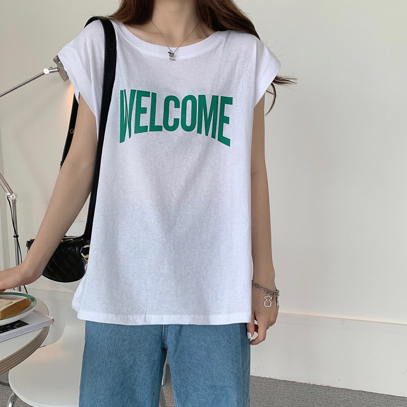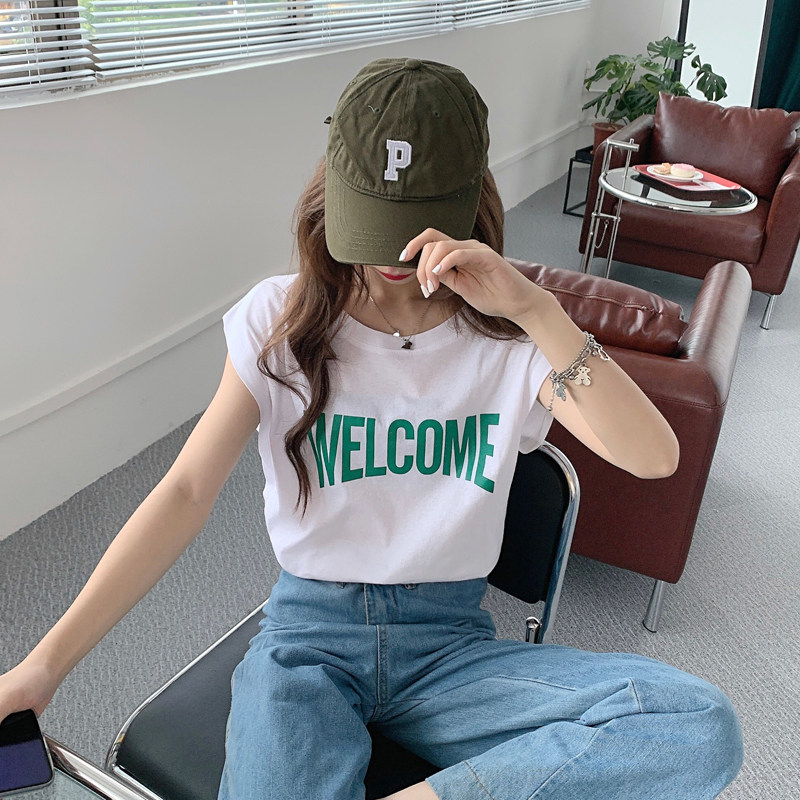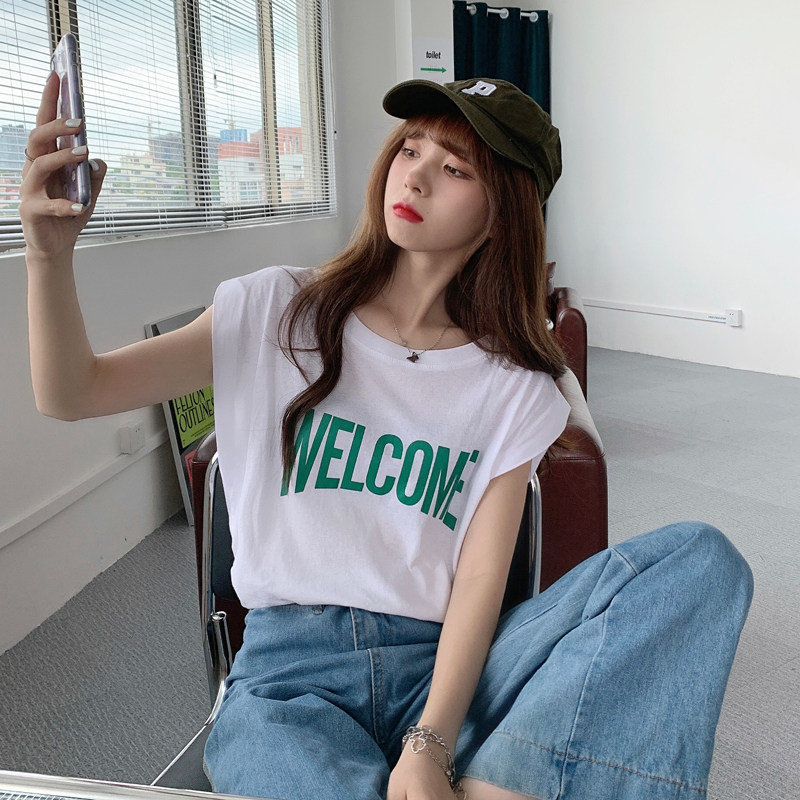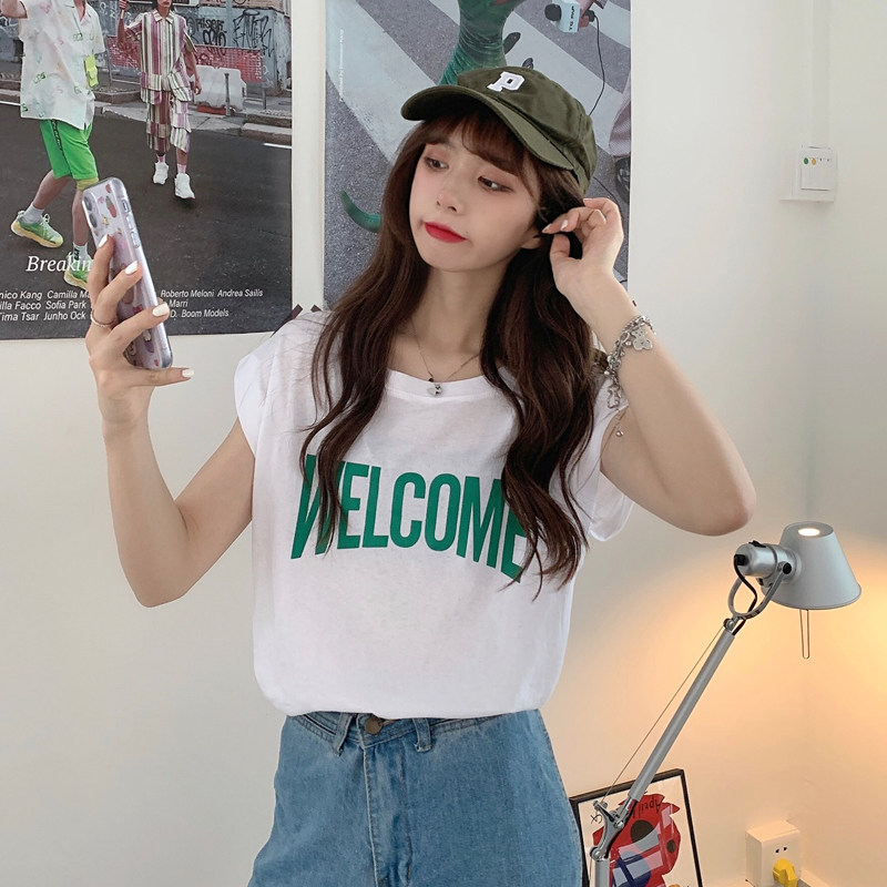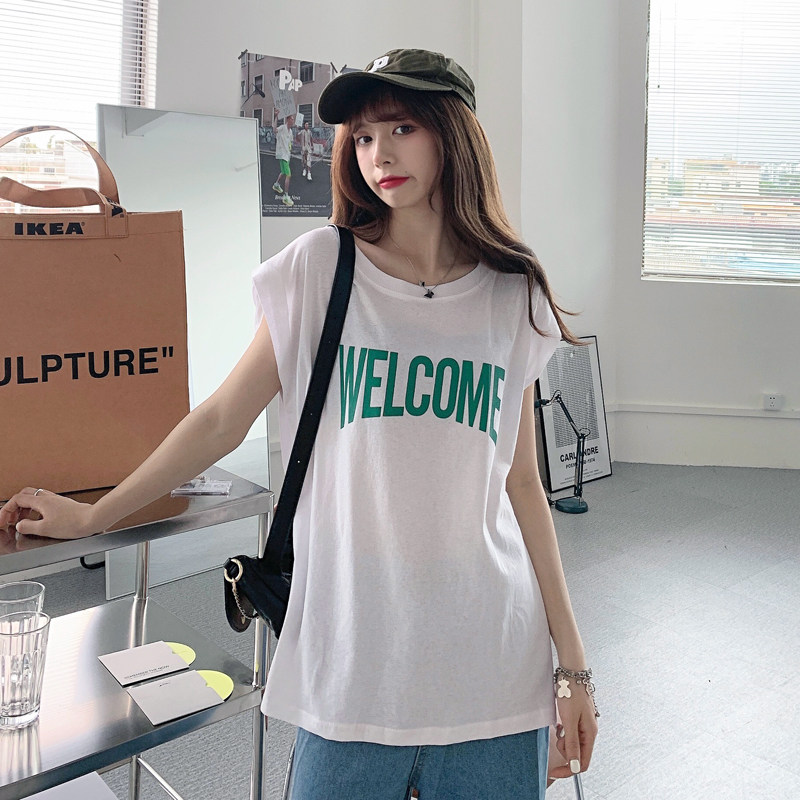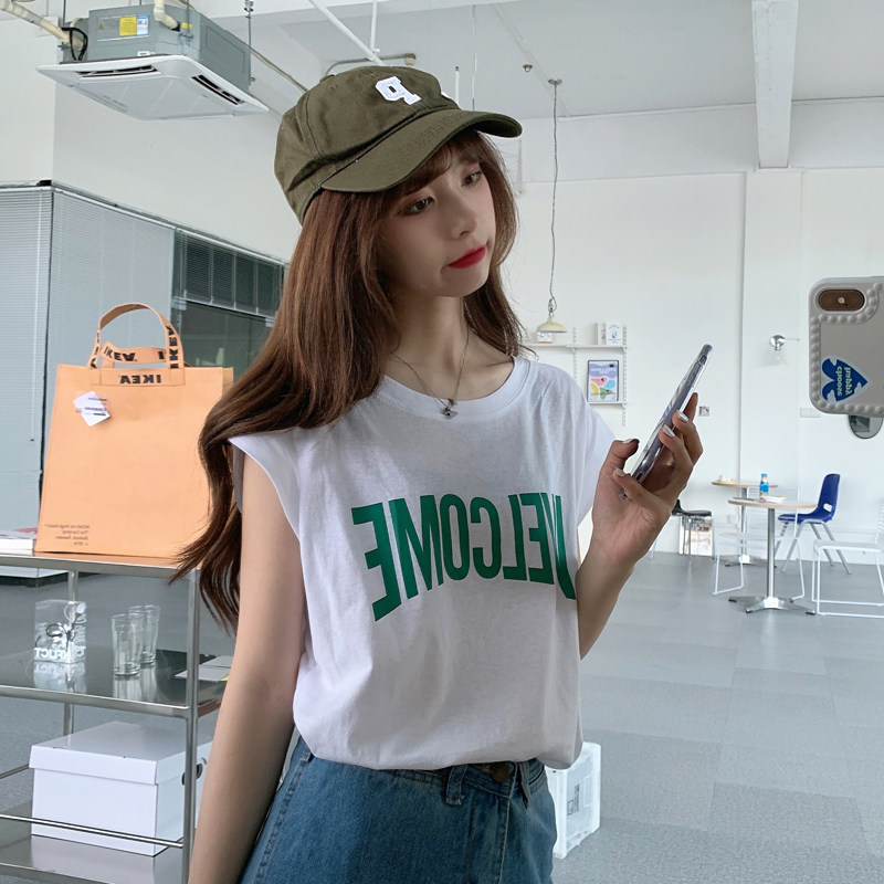 Real photo 2021 summer net red print vest top loose white BF short sleeve T-shirt for women