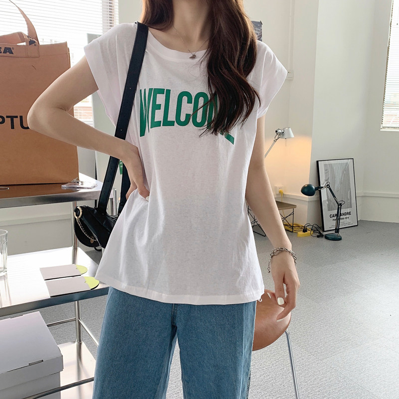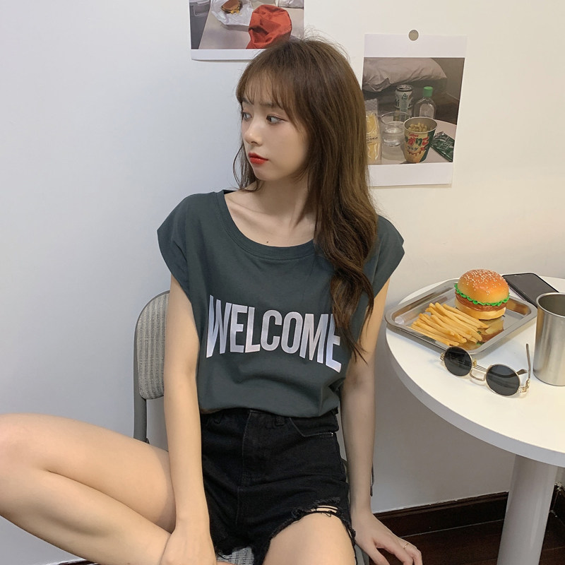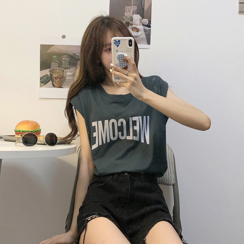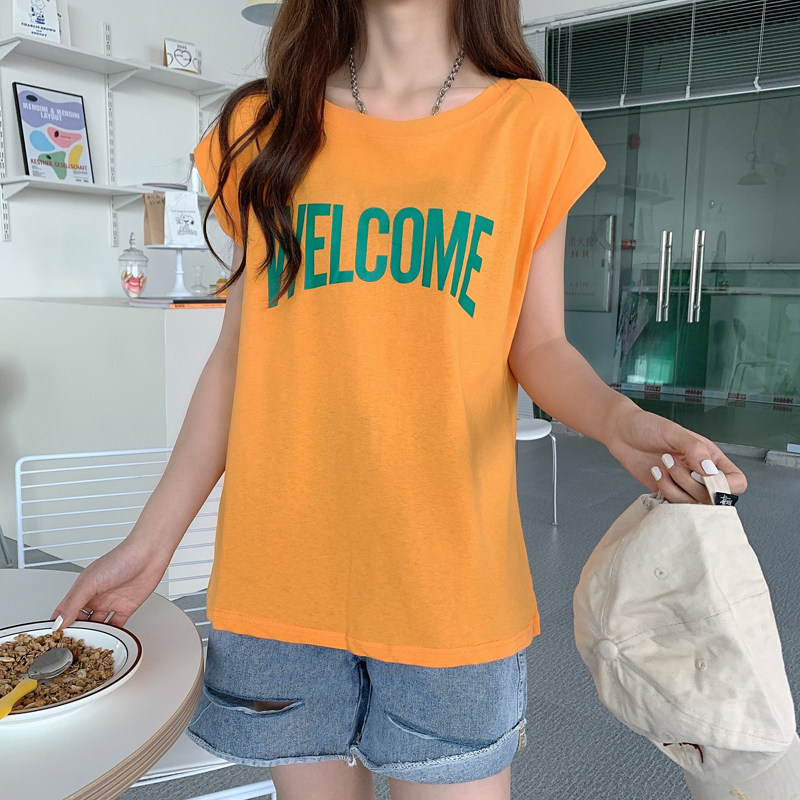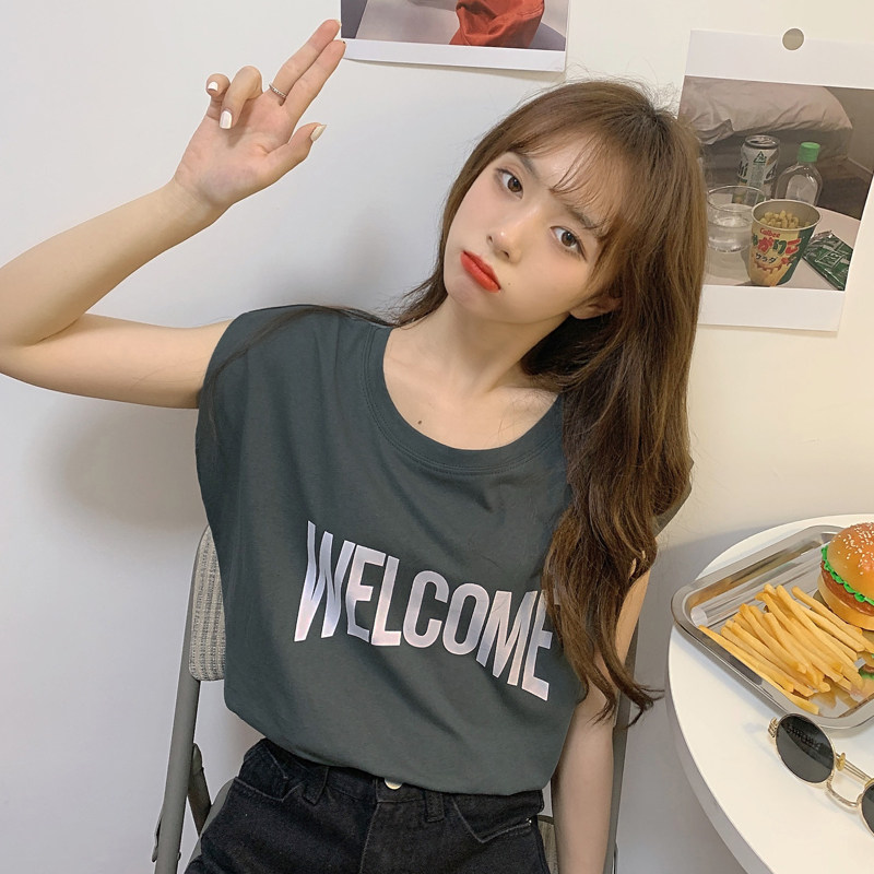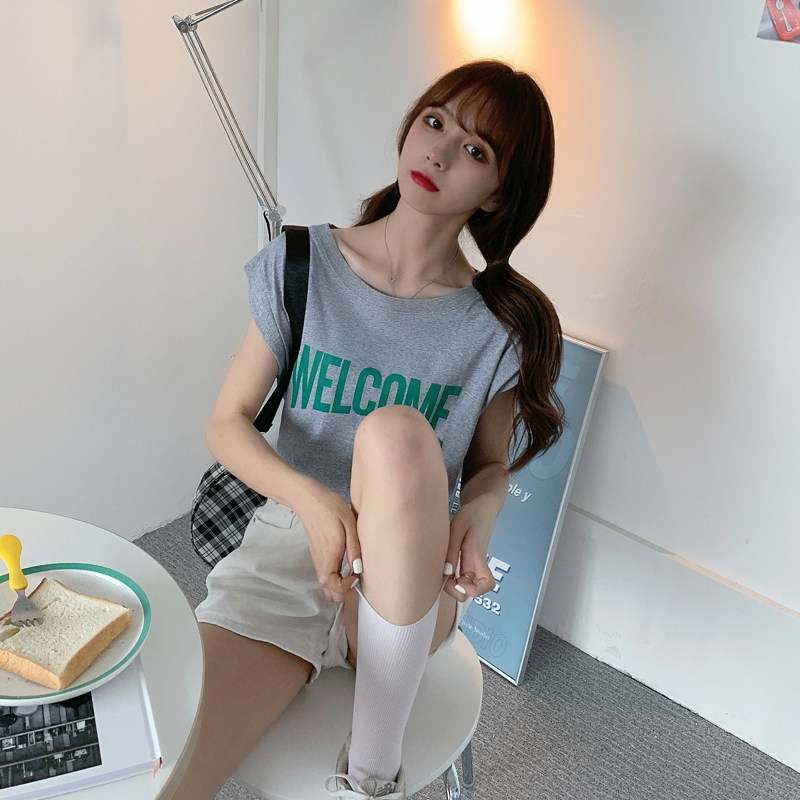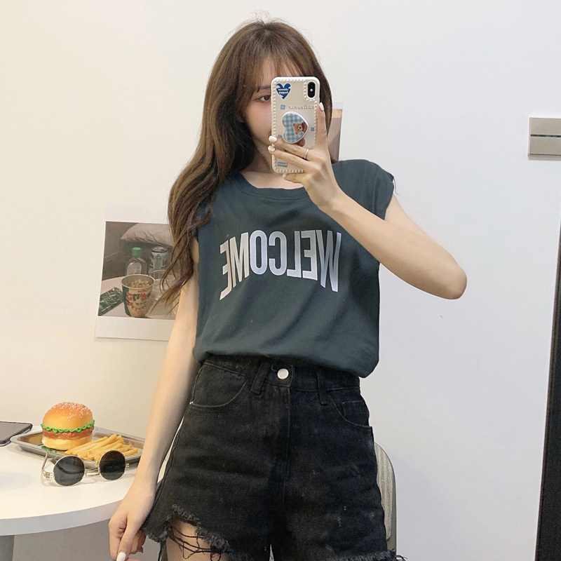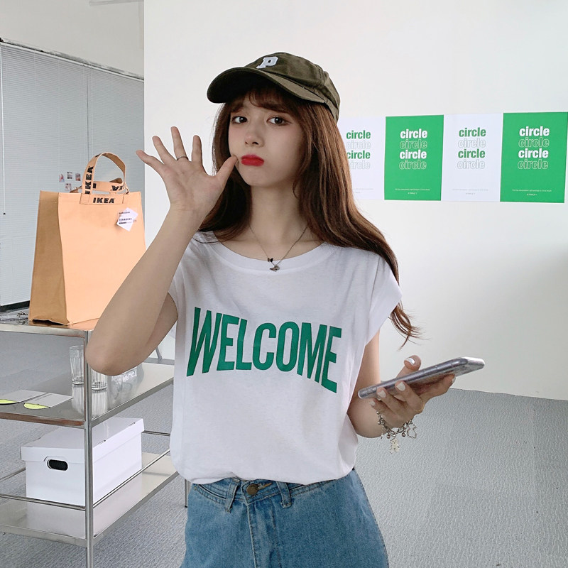 Real photo 2021 summer net red print vest top loose white BF short sleeve T-shirt for women