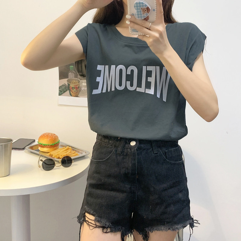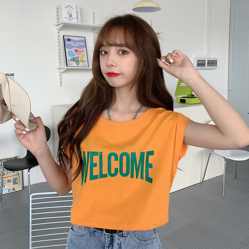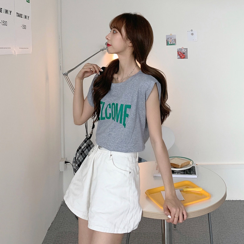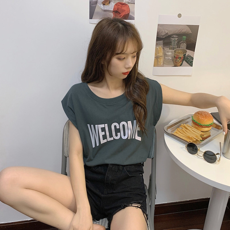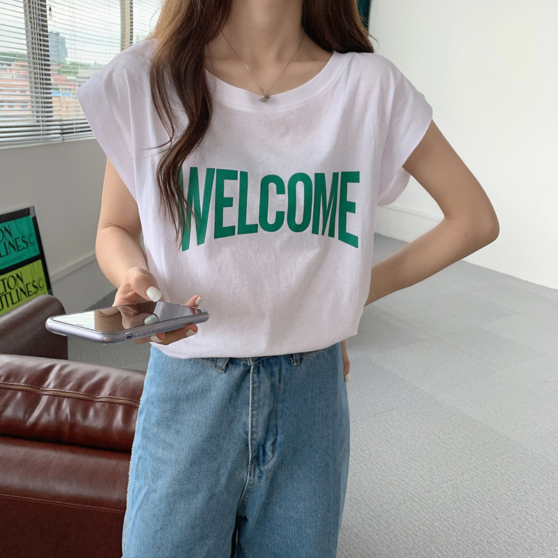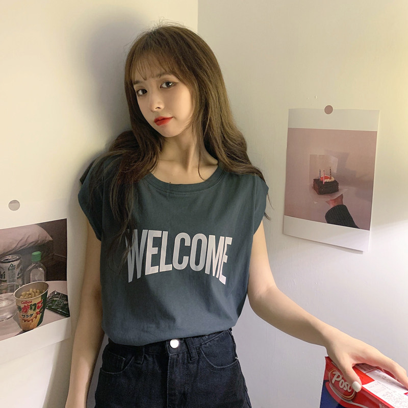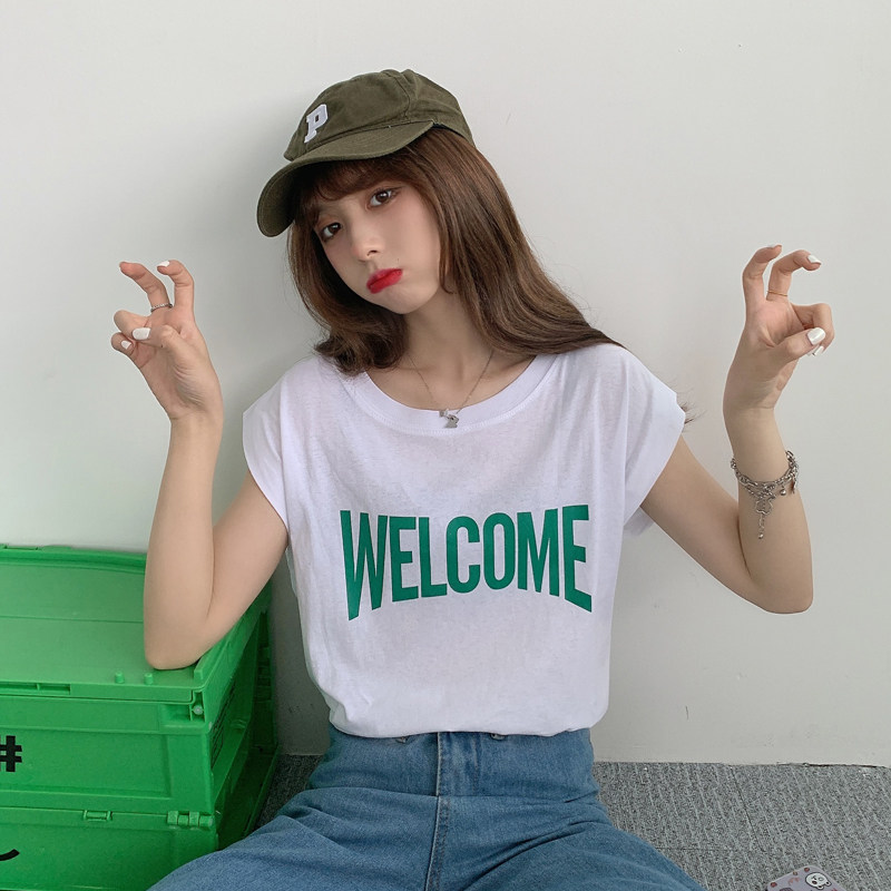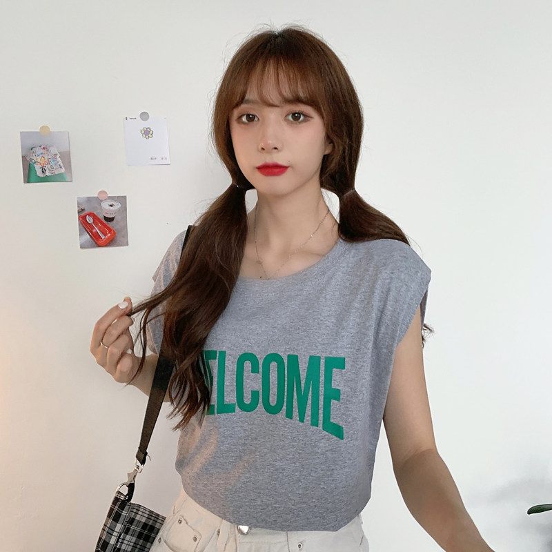 Real photo 2021 summer net red print vest top loose white BF short sleeve T-shirt for women