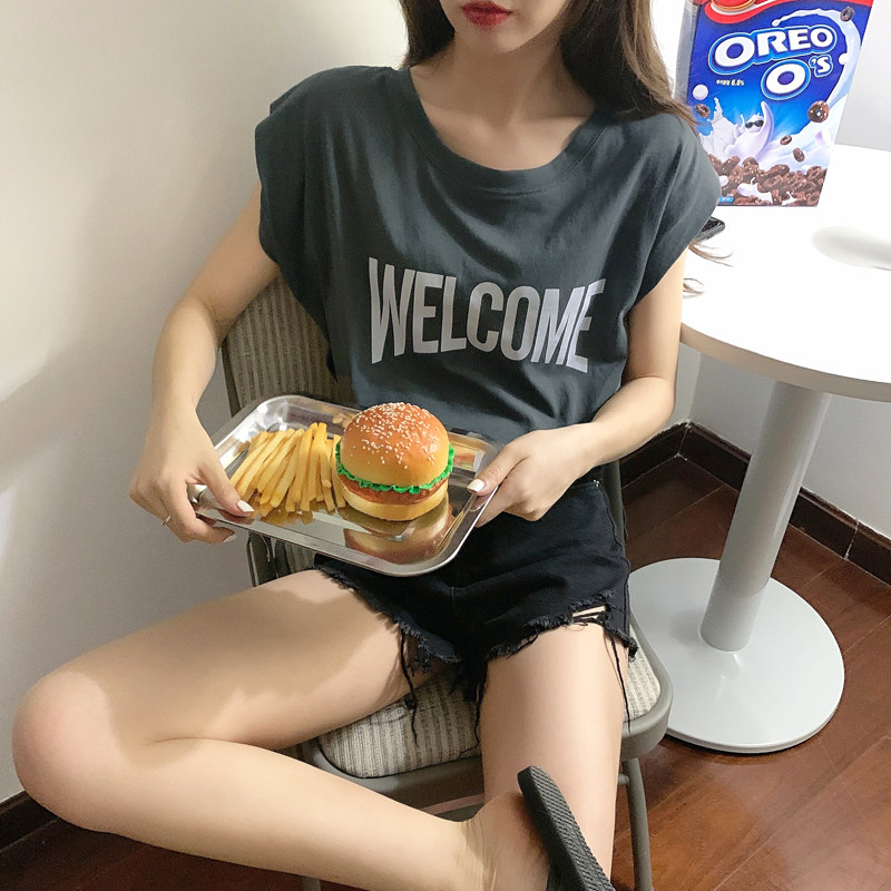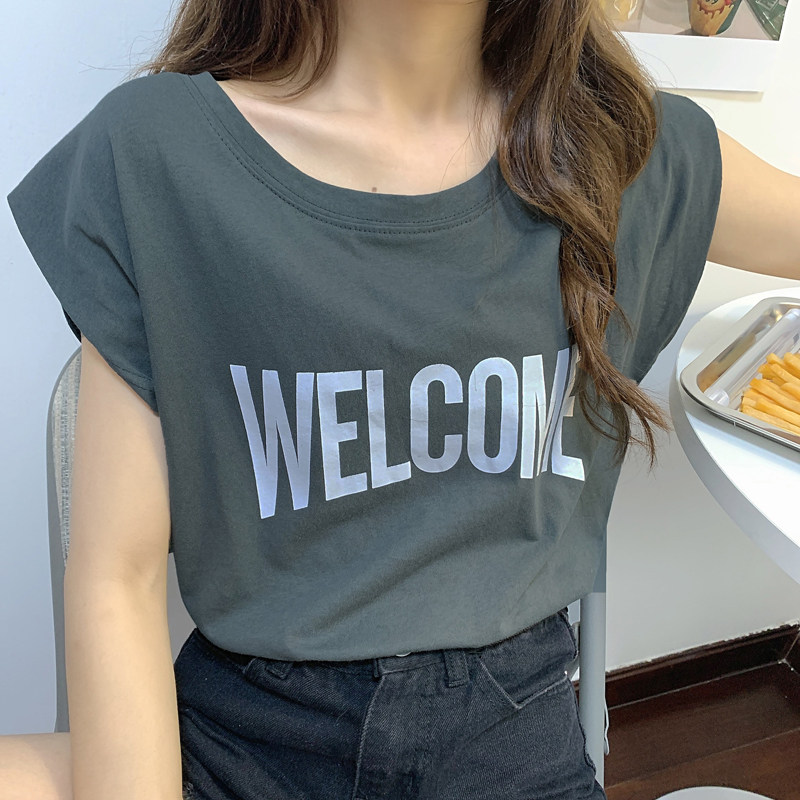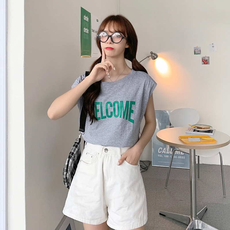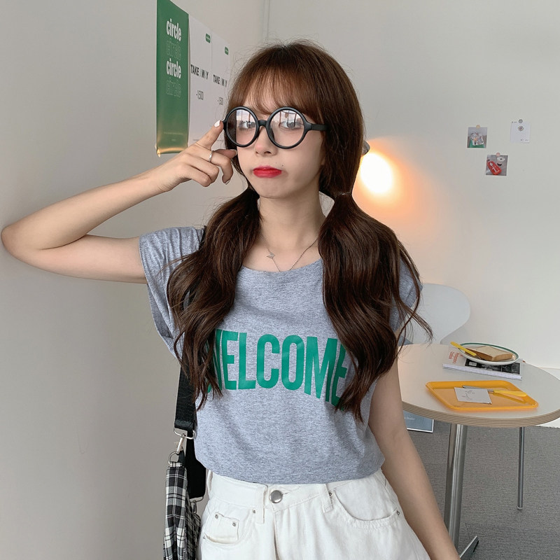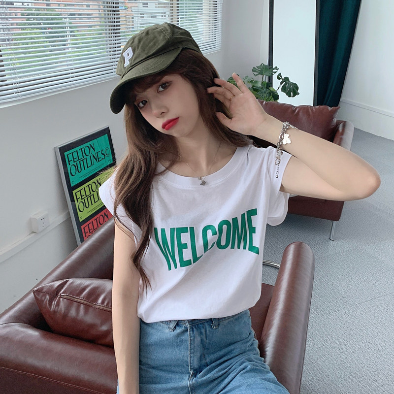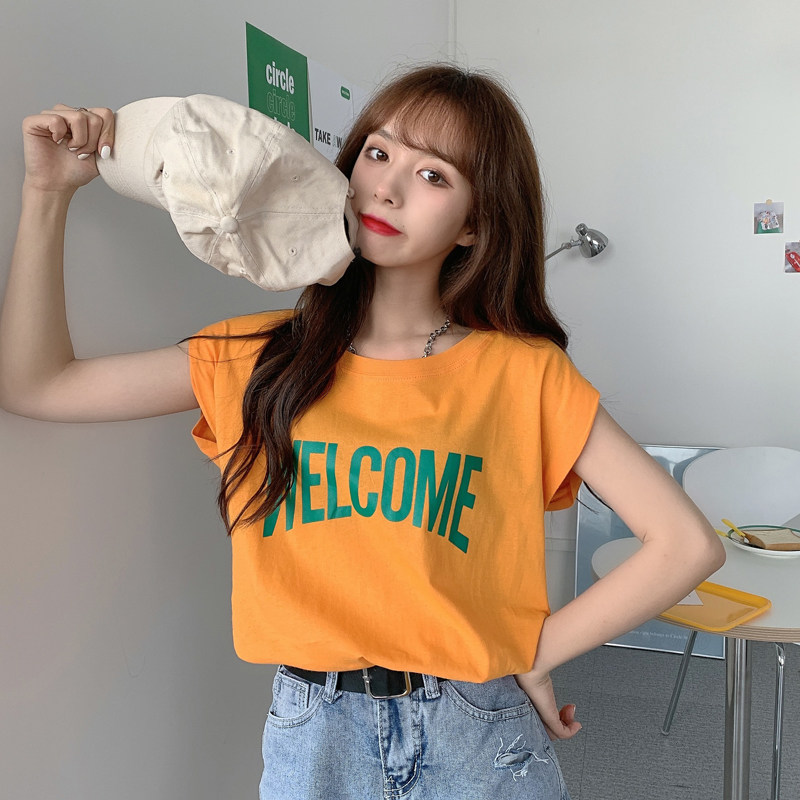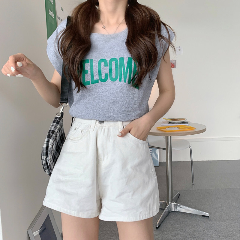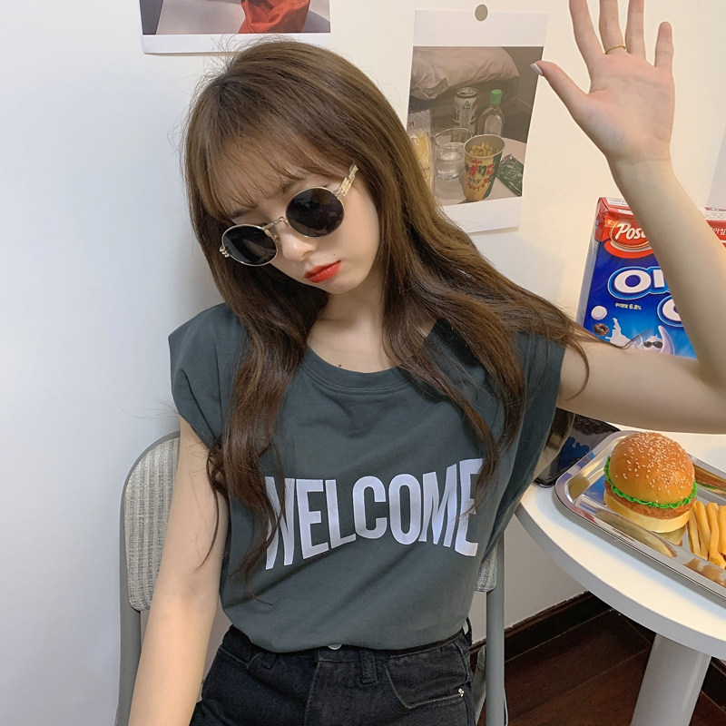 Real photo 2021 summer net red print vest top loose white BF short sleeve T-shirt for women