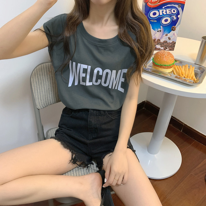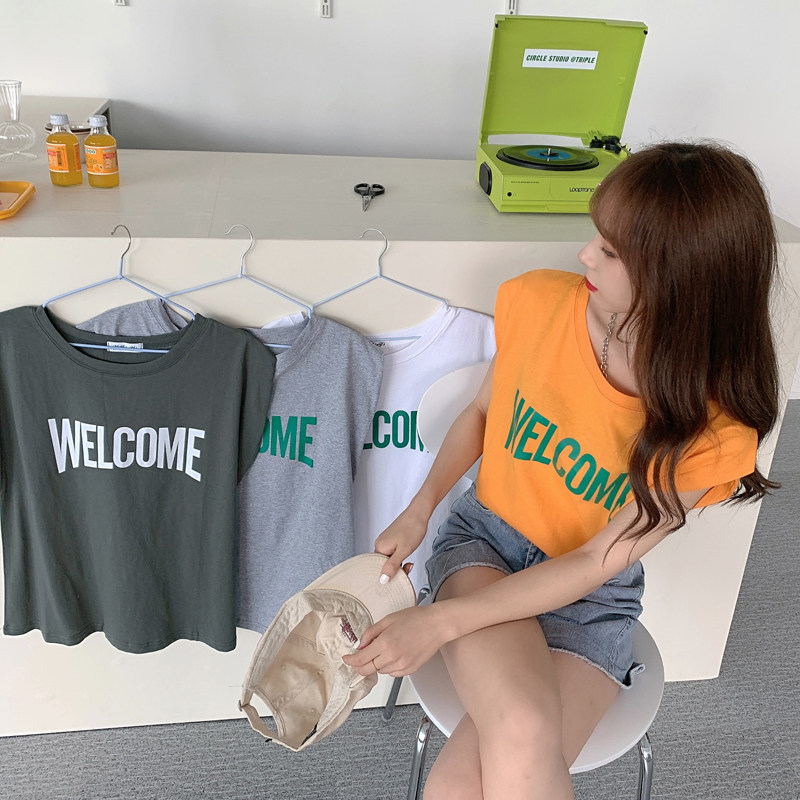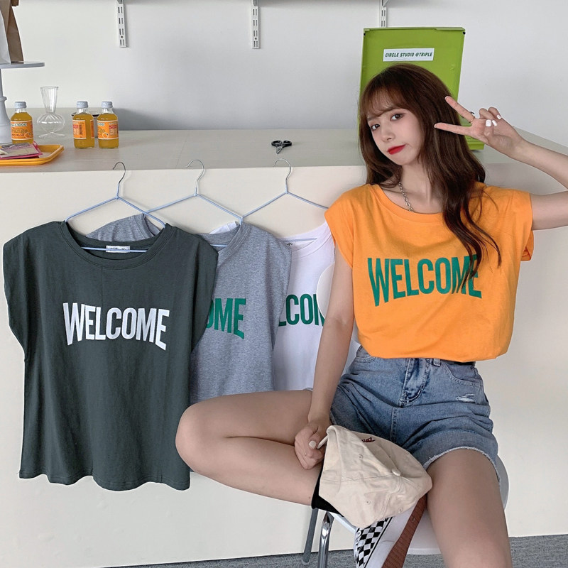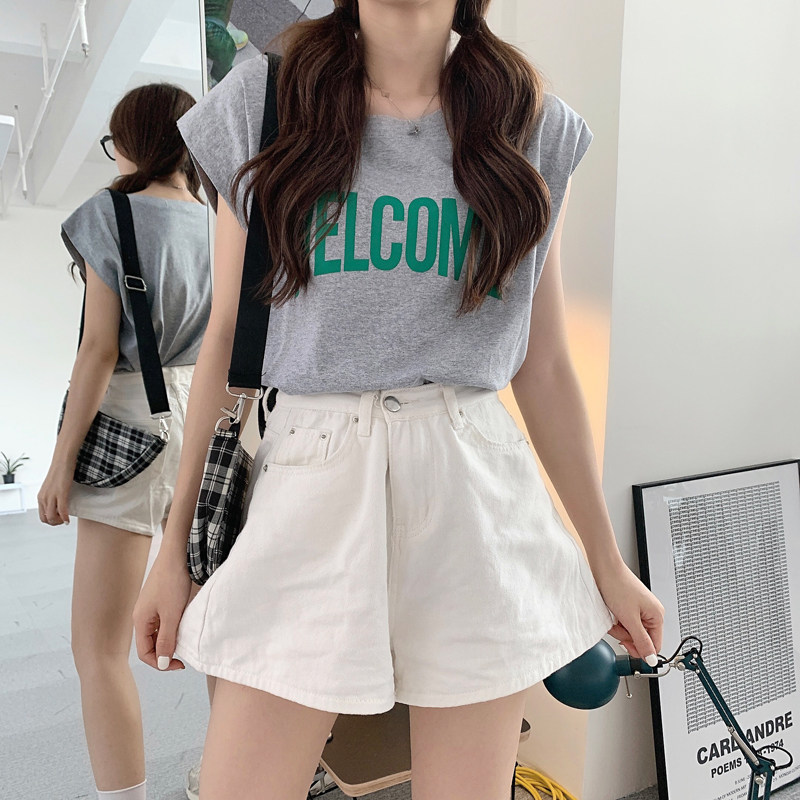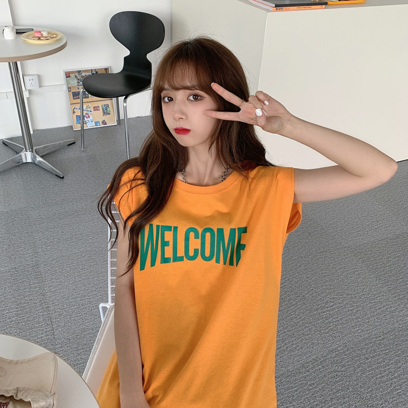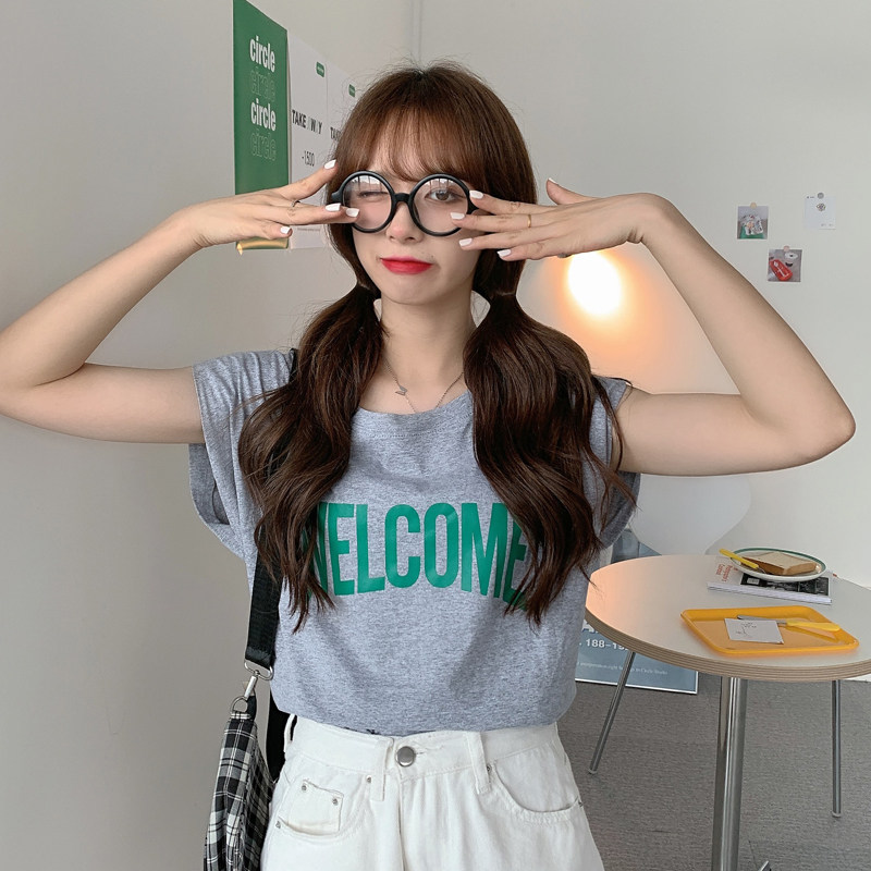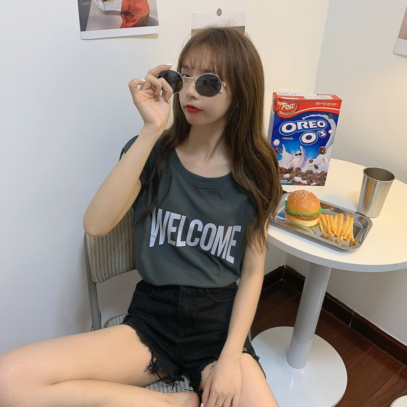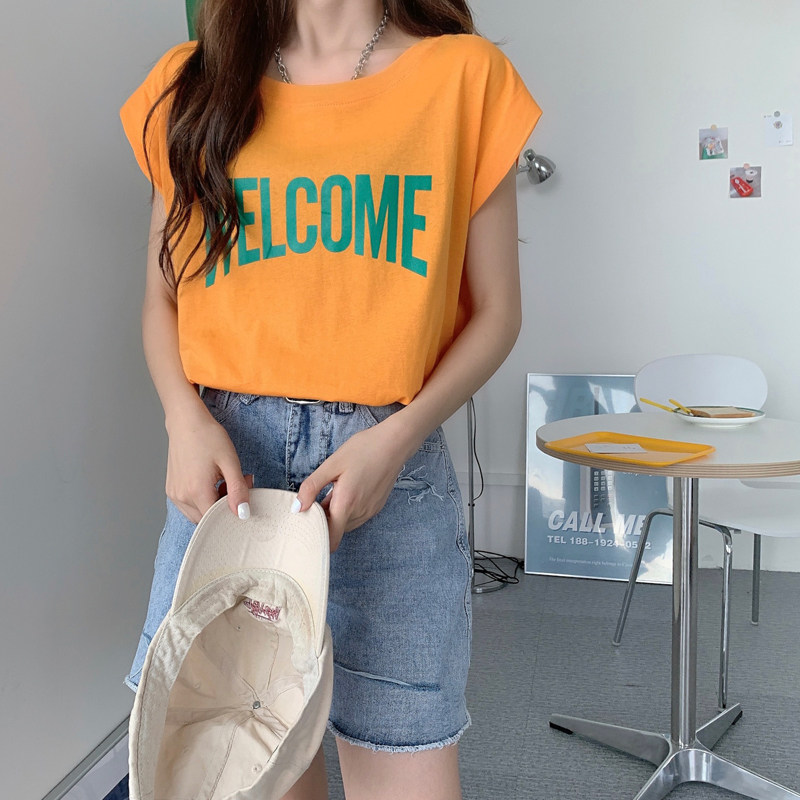 Real photo 2021 summer net red print vest top loose white BF short sleeve T-shirt for women