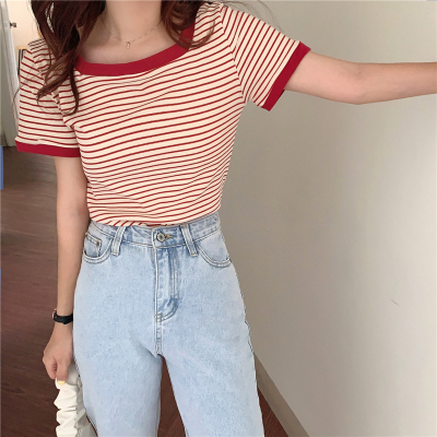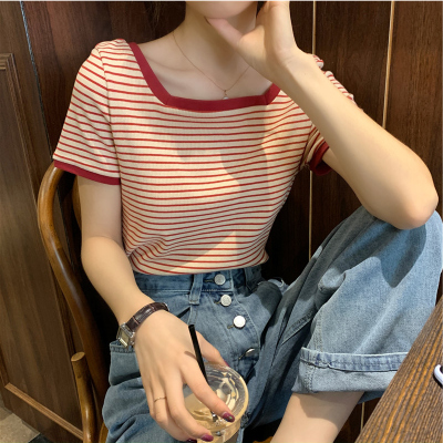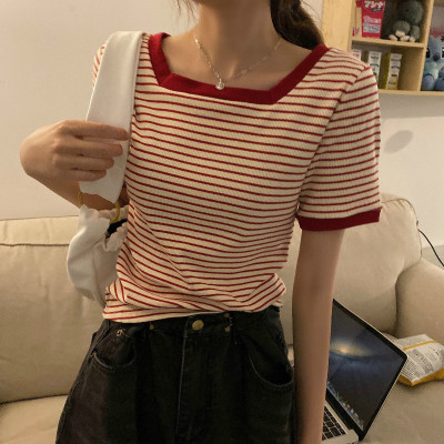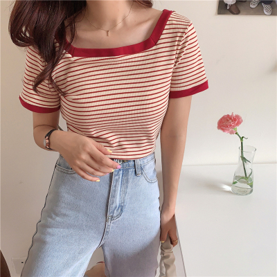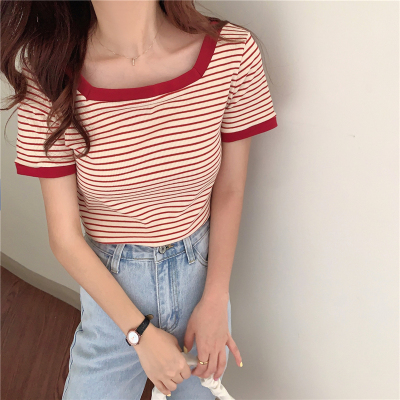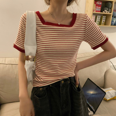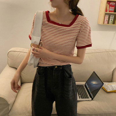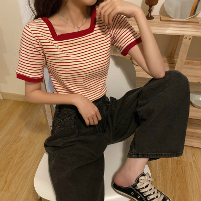 官圖 100%棉 學院風方領減齡短袖上衣2021夏裝新