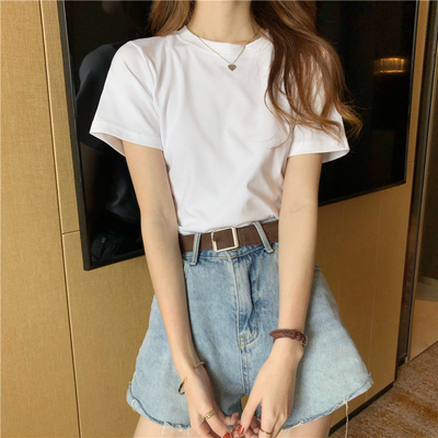 Real shot cotton short sleeve T-shirt for women's slim fit