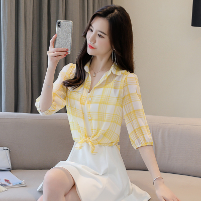 Take a real photo of the new Plaid chiffon shirt in 2020 summer