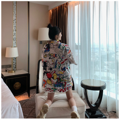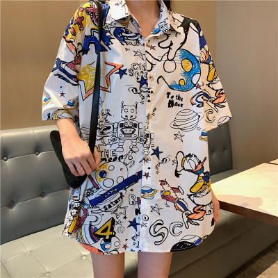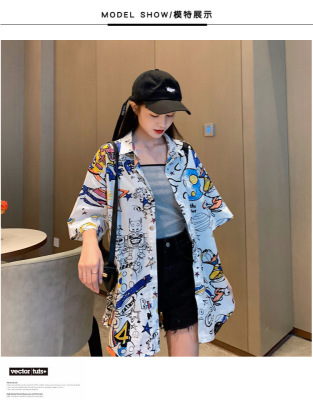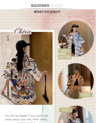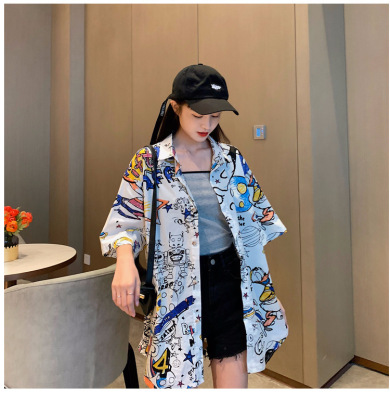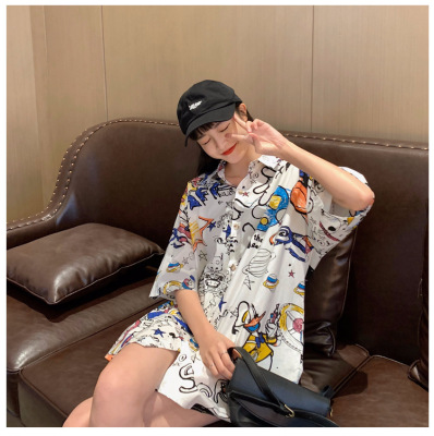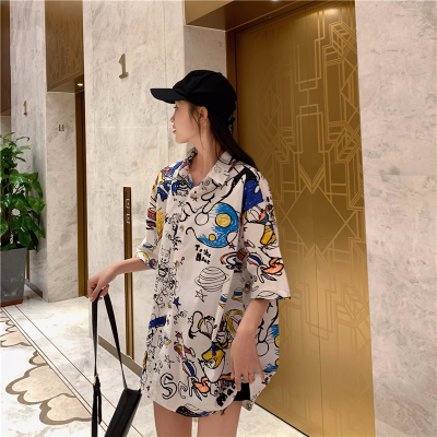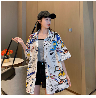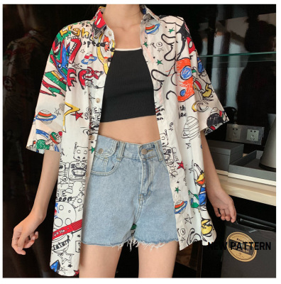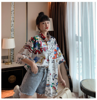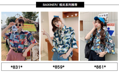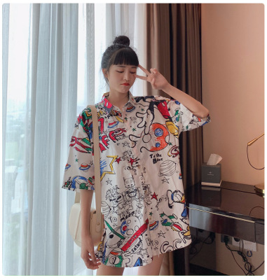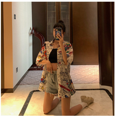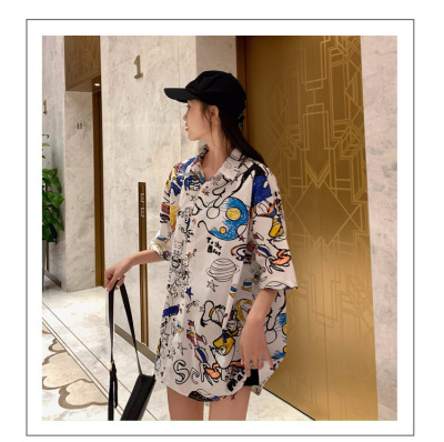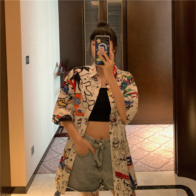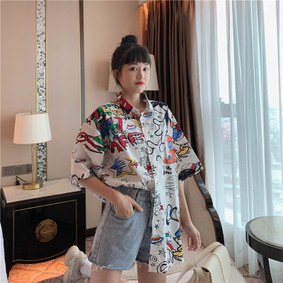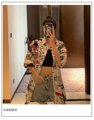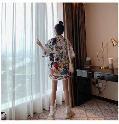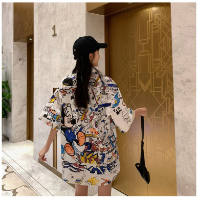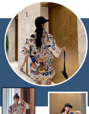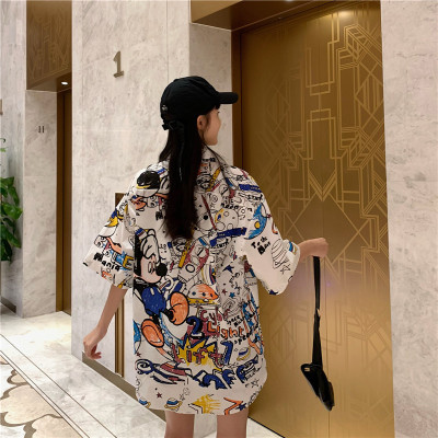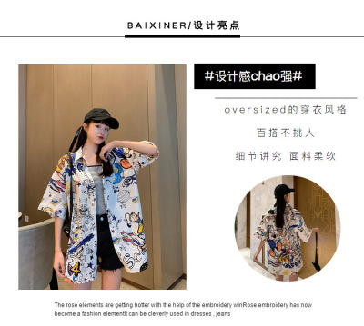 Actual photo ~ New Mickey design sense minority short sleeve Hong Kong style retro floral shirt female