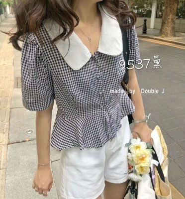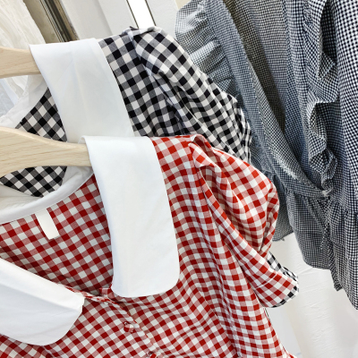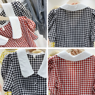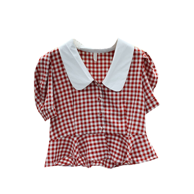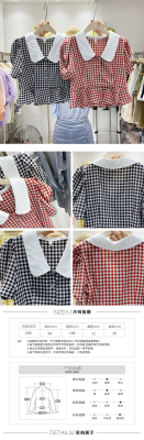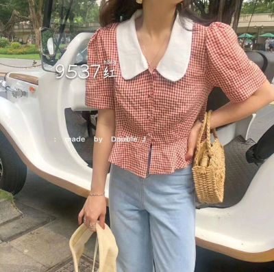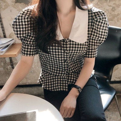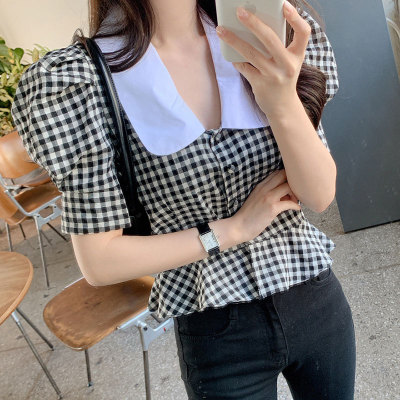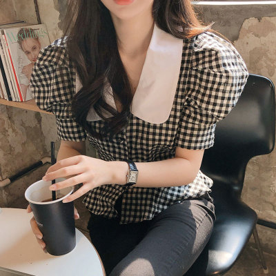 East Gate Baby collar Plaid short sleeve shirt for women 2020 summer wear new Korean version retro all over shirt top