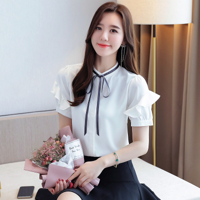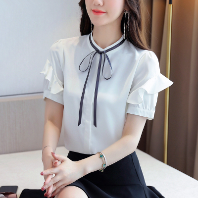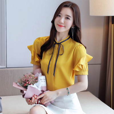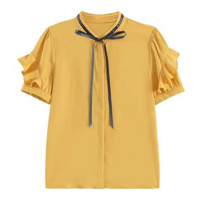 Real photo chiffon blouse women's summer style long sleeve top Western style lace up Ruffle light mature yujiefeng shirt