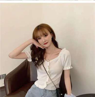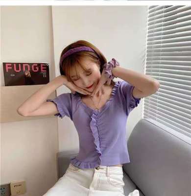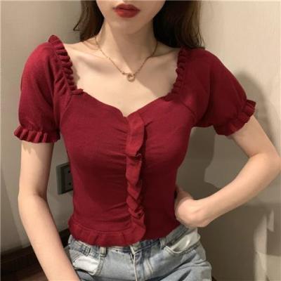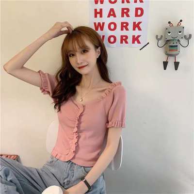Net red V-neck knitwear women's new 2020 short sleeve T-shirt summer thin style inside bottom layer show thin top