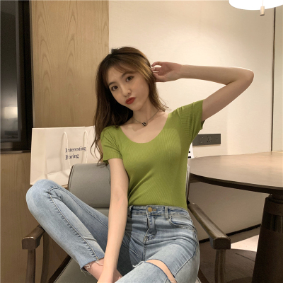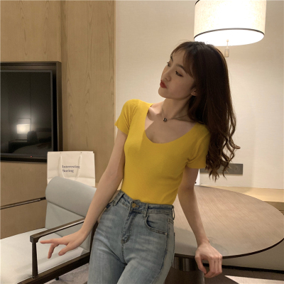 Retro short sleeve T-shirt sweater T-shirt women's new 2020 summer Korean Short style with bottoming top