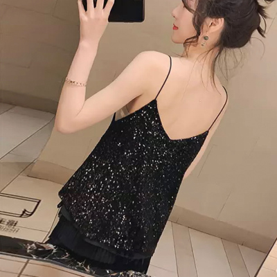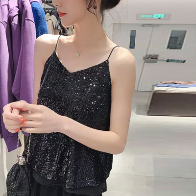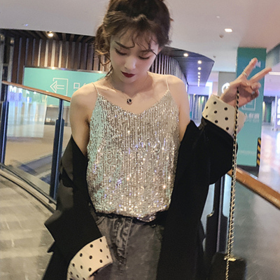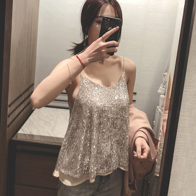 Spring / summer 2020 new style with sexy glittering Sequin suspender vest women's loose top mschf bottomed out