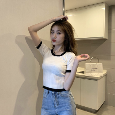 Official picture red short sleeve T-shirt women's short slim fit summer sexy tight knit thin top 2020