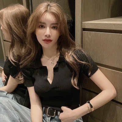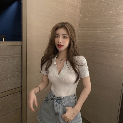 Net red ins super fire knitted short sleeve T-shirt for women 2020 summer temperament