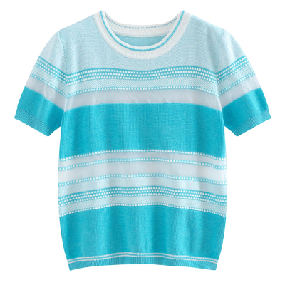 Knitted short sleeve pink t-shirt women's loose fit summer 2020 machine top sexy hollowed out stitching T-shirt