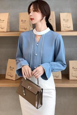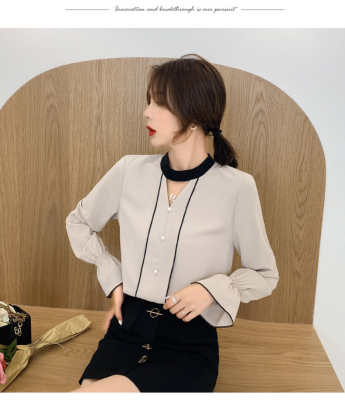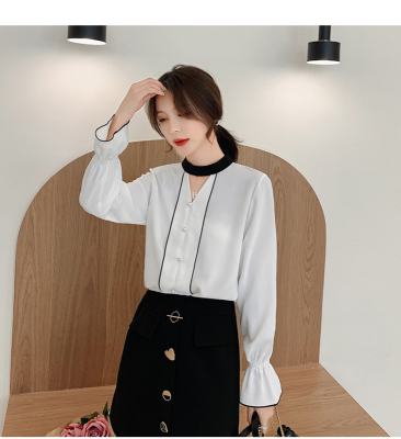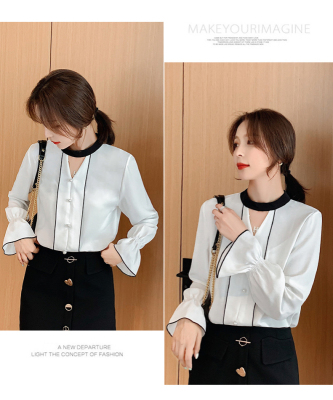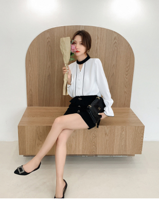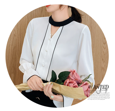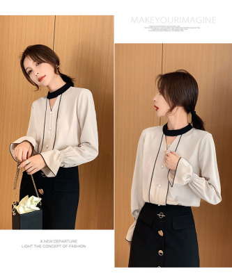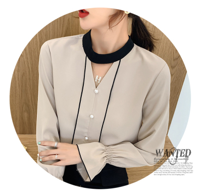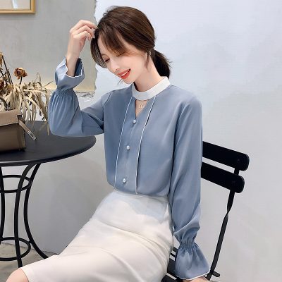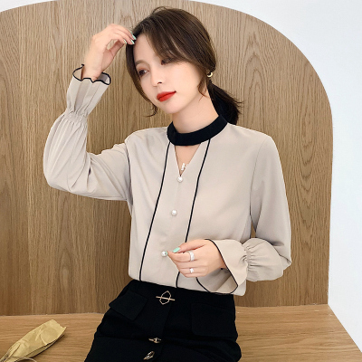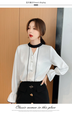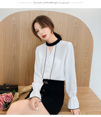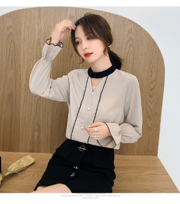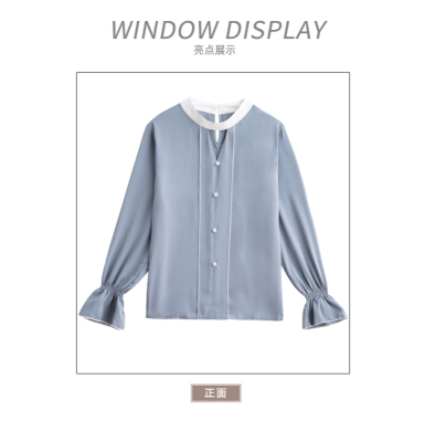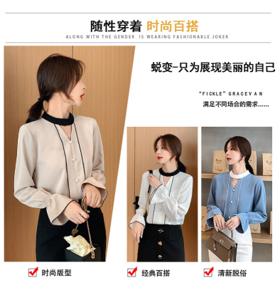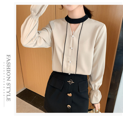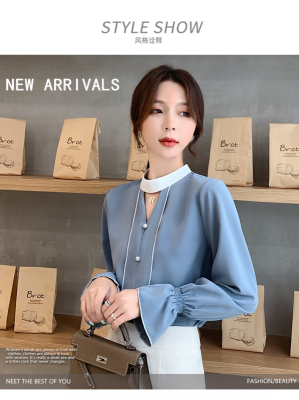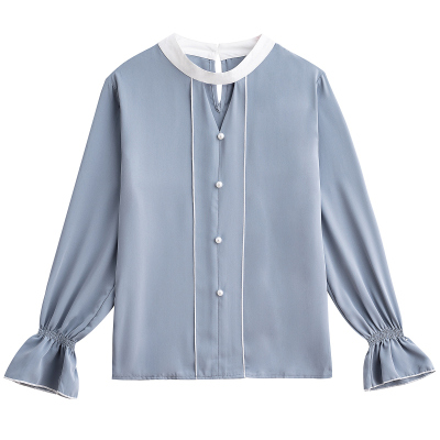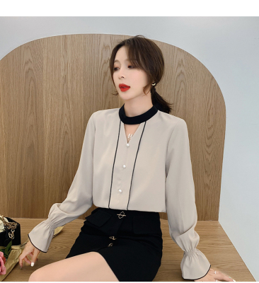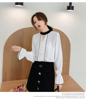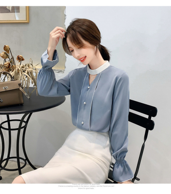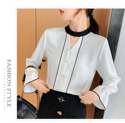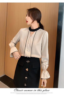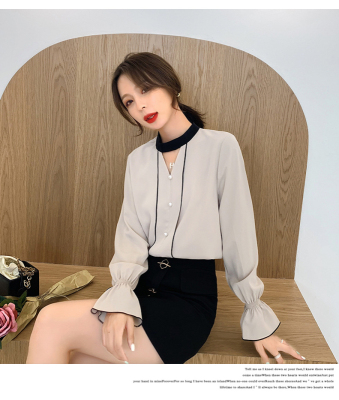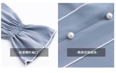Photo shoot early autumn new super fairy trumpet Sleeve Chiffon shirt feminine nail bead hollowed out long sleeve bottom coat