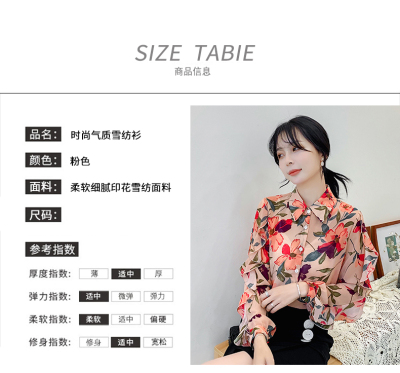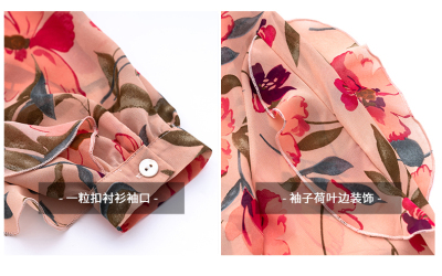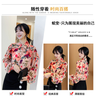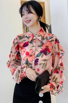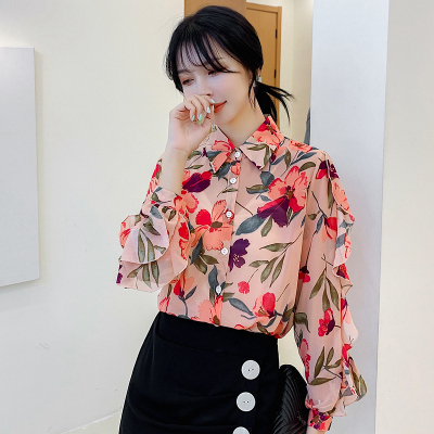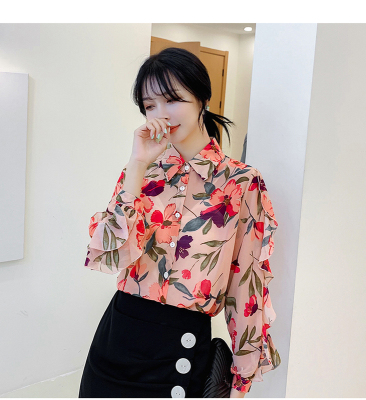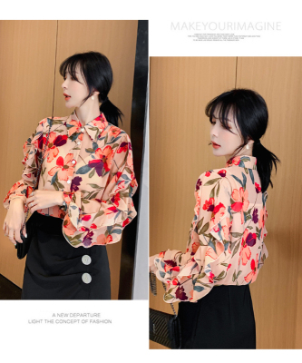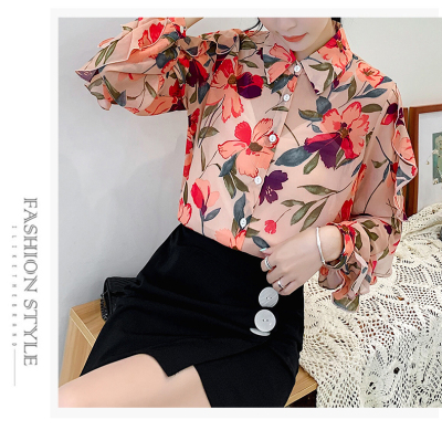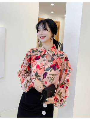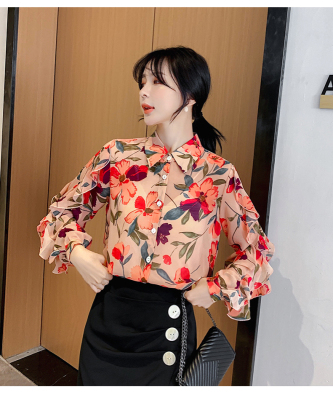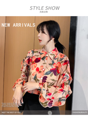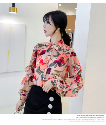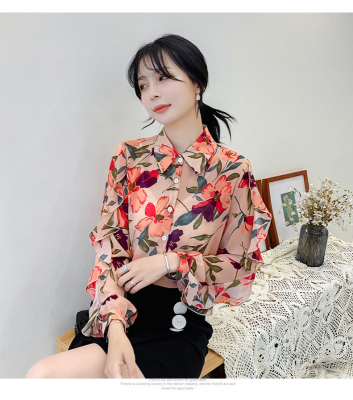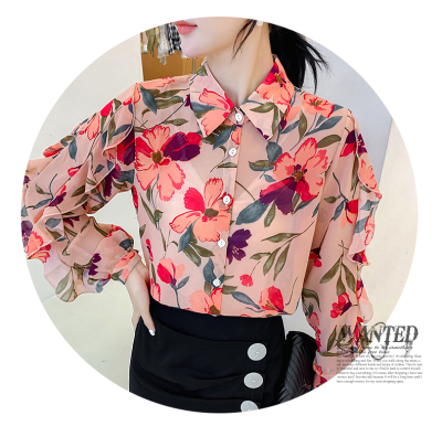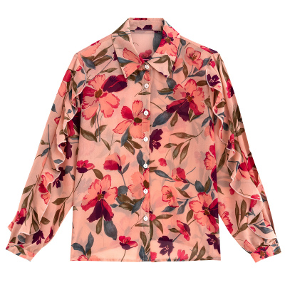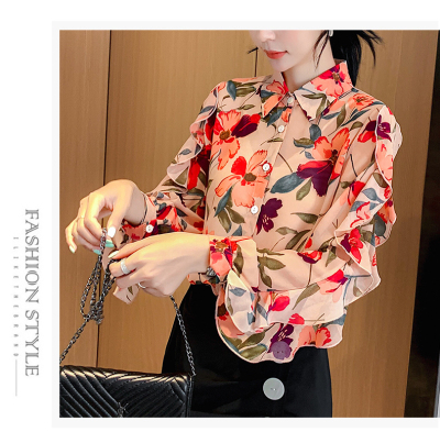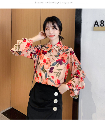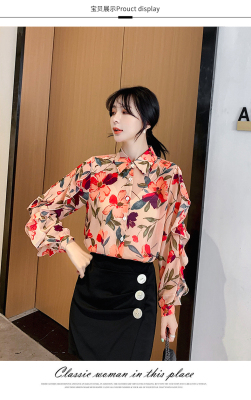 Real shot of Hong Kong Style broken Flower Chiffon shirt women's autumn new temperament chic shirt heart design sense minority top