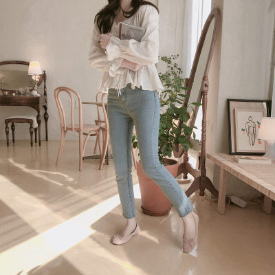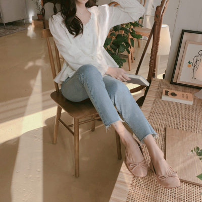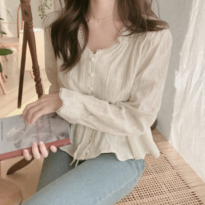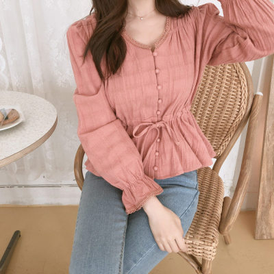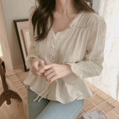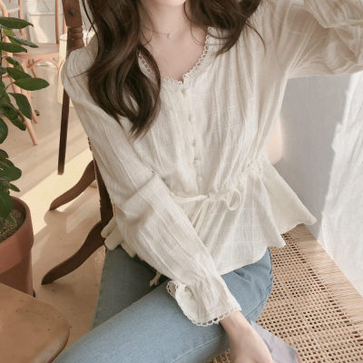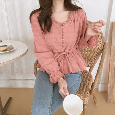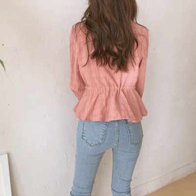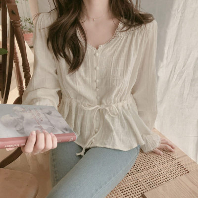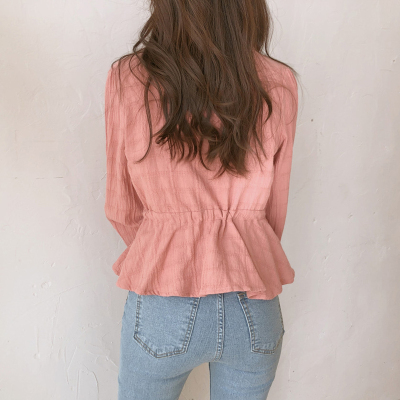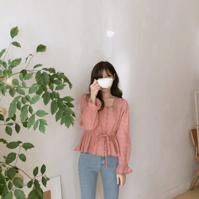 Autumn 2020 new V-neck shirt women's Retro Hong Kong Style versatile design sense minority long sleeve waist top