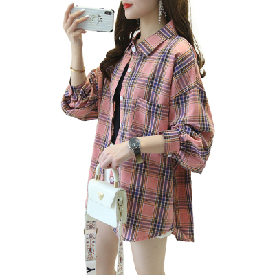 Design sense small crowd loose Plaid Shirt women's Lantern Sleeve spring summer 2020 new versatile Korean shirt wear fashion