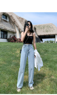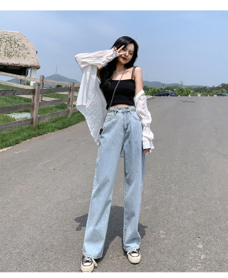 High Waist Wide Leg Pants autumn jeans women's 2020 new summer thin straight tube loose drop feeling floor dragging pants