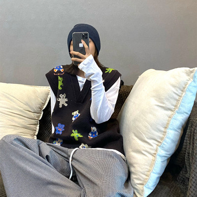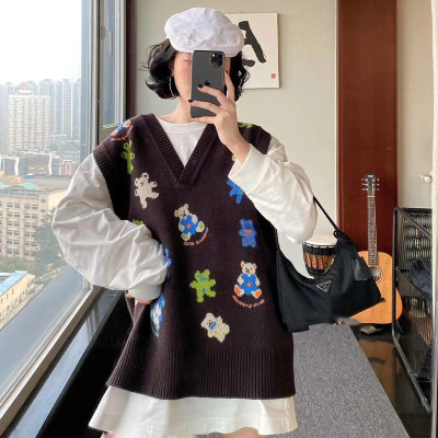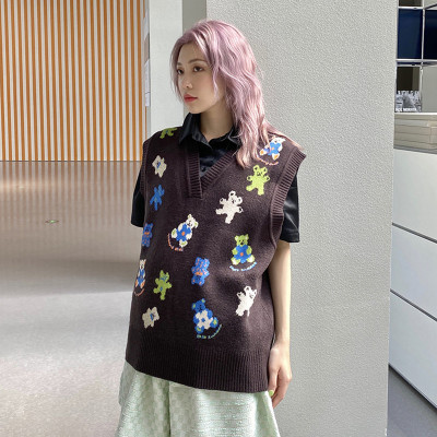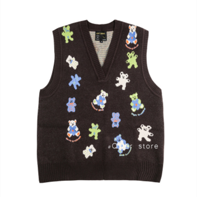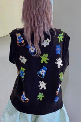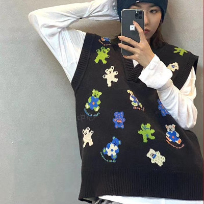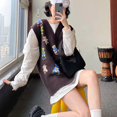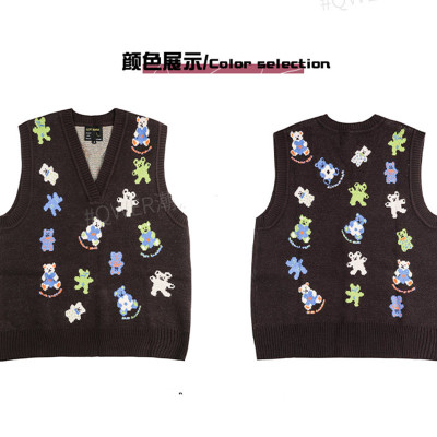 Fashion Center bear sweater vest V-Neck Sweater Vest women's Pullover knitting sleeve less coat soft banana