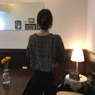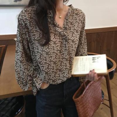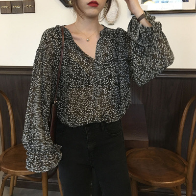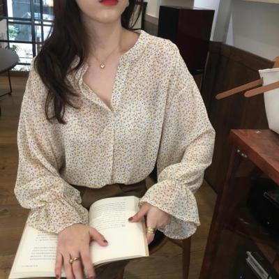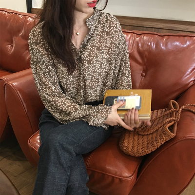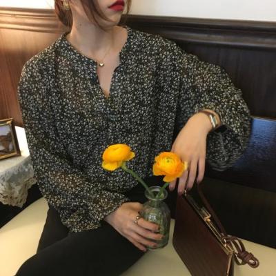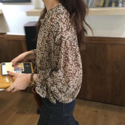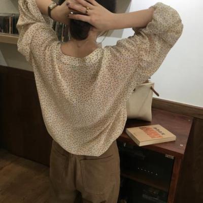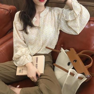 Long sleeve Floral Chiffon shirt women's fall 2020 new Korean style bubble sleeve foreign style Pullover Top