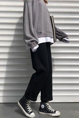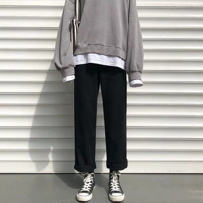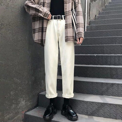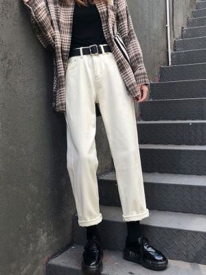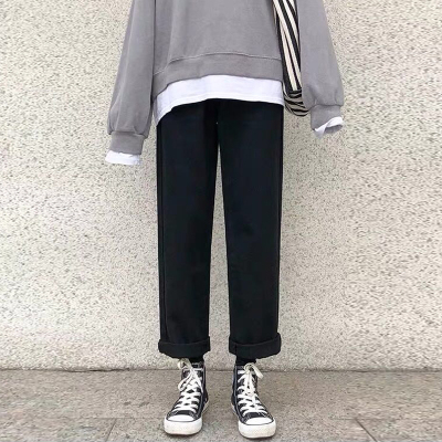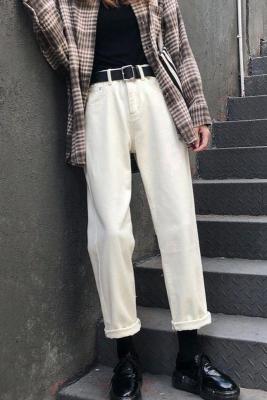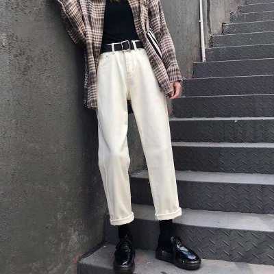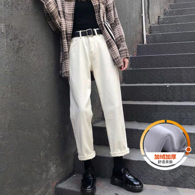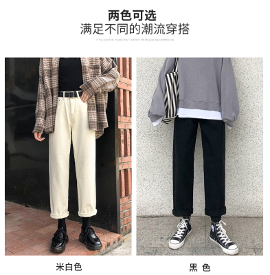Off white jeans women's straight tube loose high waist show thin fall 2020 new wide leg daddy jeans pants