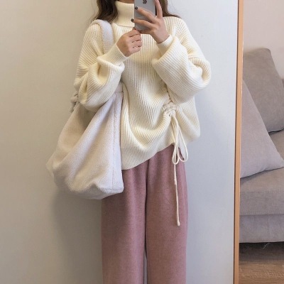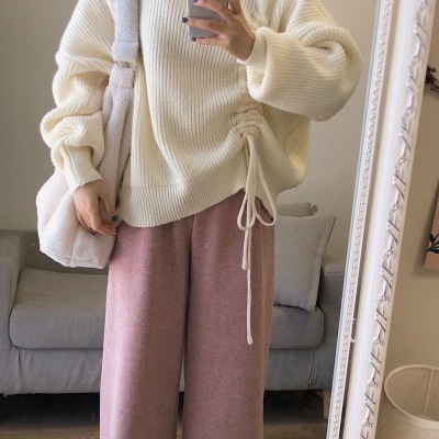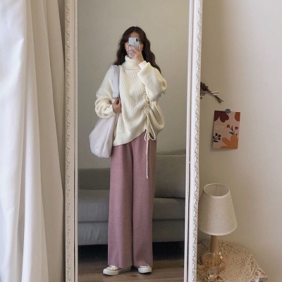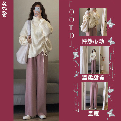 怦然心動+羊絨褲粉|復古港風chic毛衣裙子兩件套裝女冬