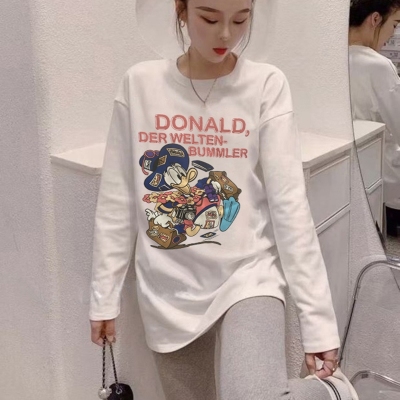 Cotton 2021 autumn Korean version new loose and thin cartoon letter round neck long sleeve T-shirt bottomed top