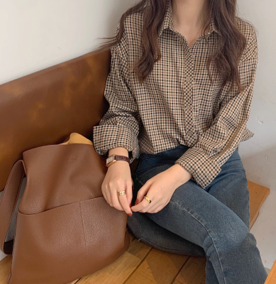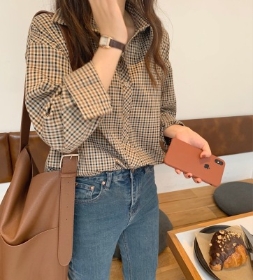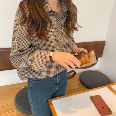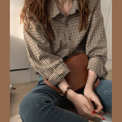 Retro brown plaid shirt for women's design