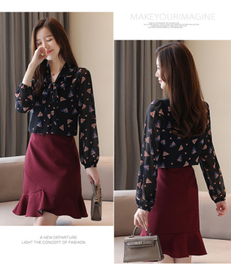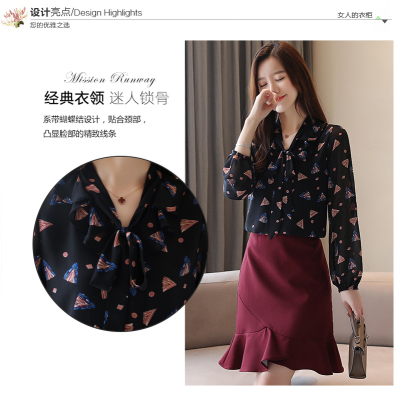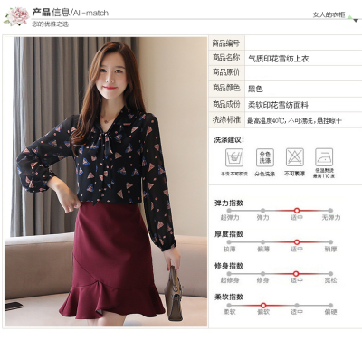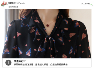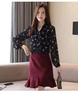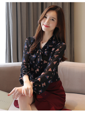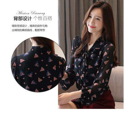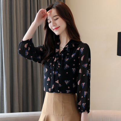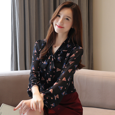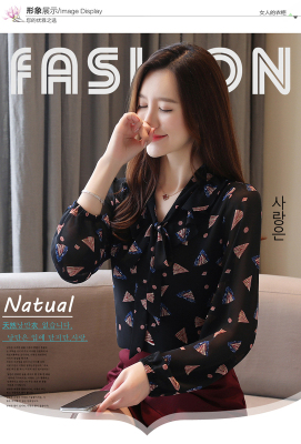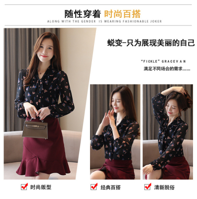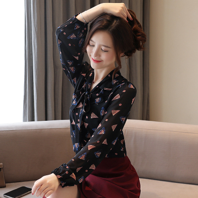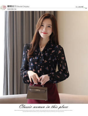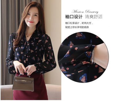Real shot long sleeve Floral Chiffon Top Women's spring new lace up shirt fashion bottom coat foreign style small shirt
