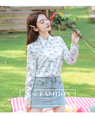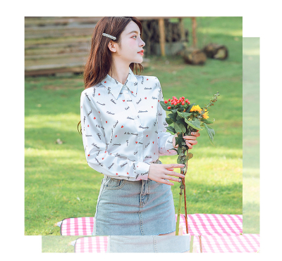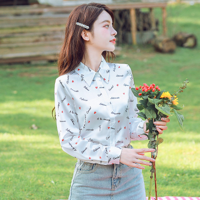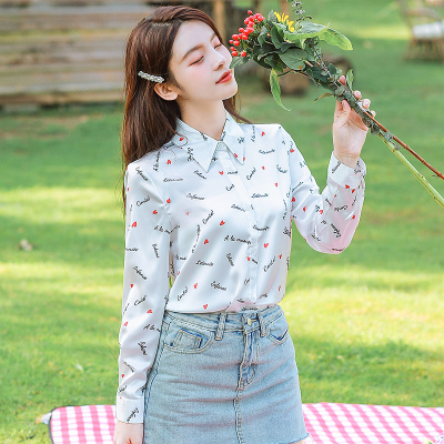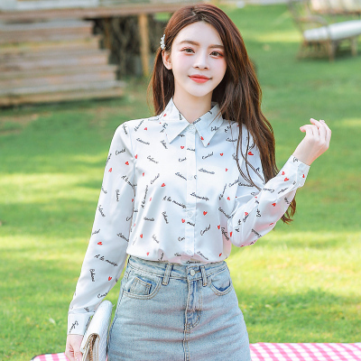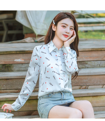 Real photo age reduction little red heart 2021 spring new versatile design shirt letter printed shirt
