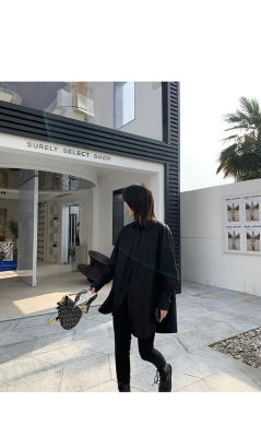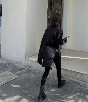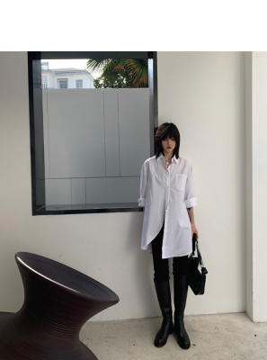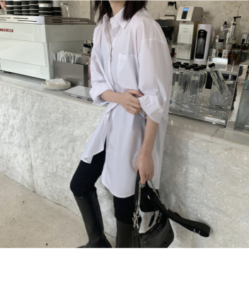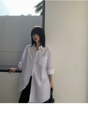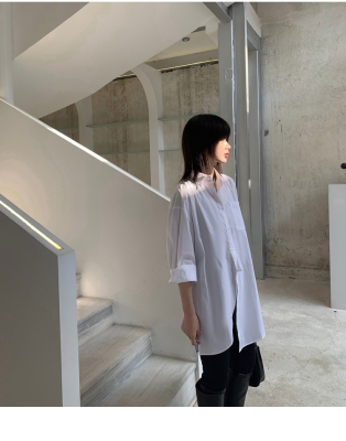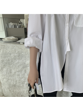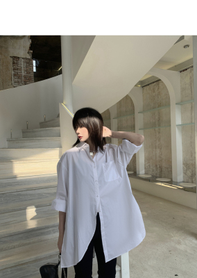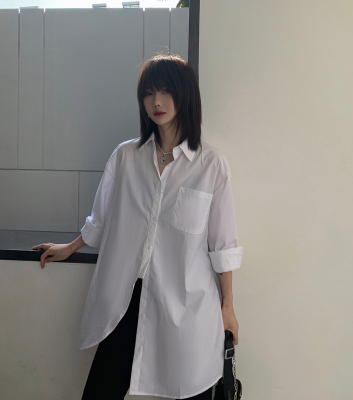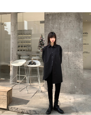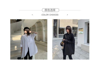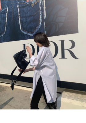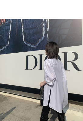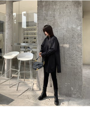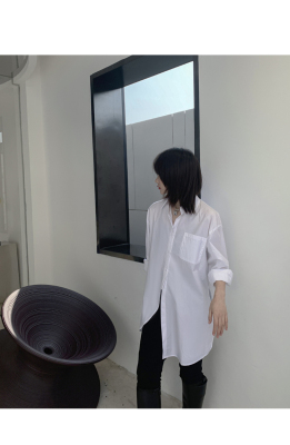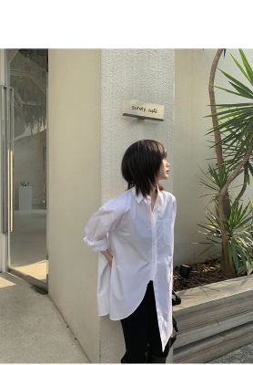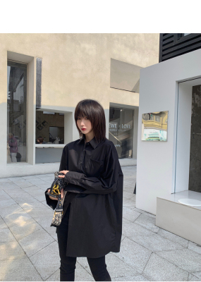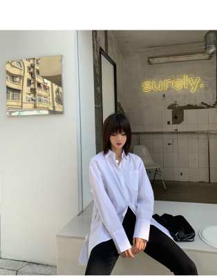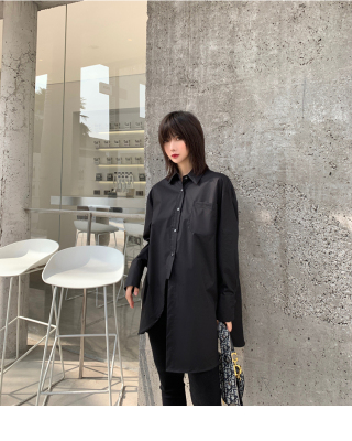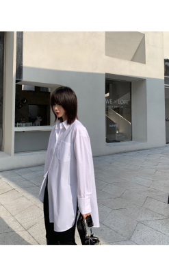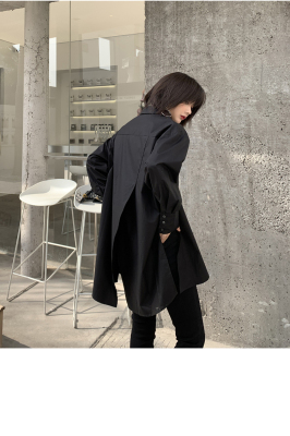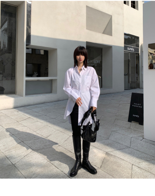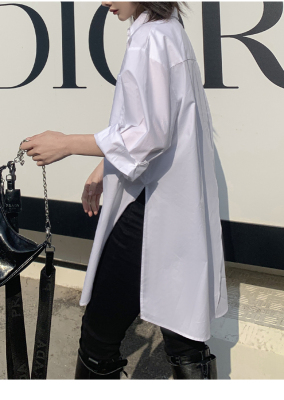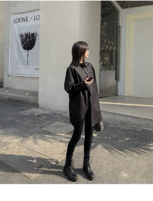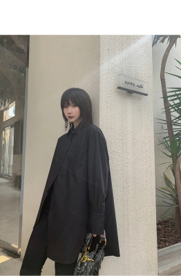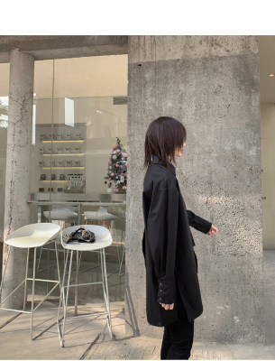 Real shot 2021 spring new BF wind dark niche design irregular shirt women's middle long Korean version top