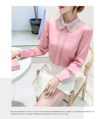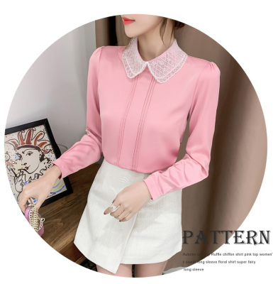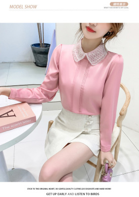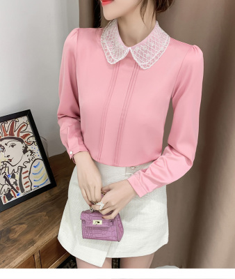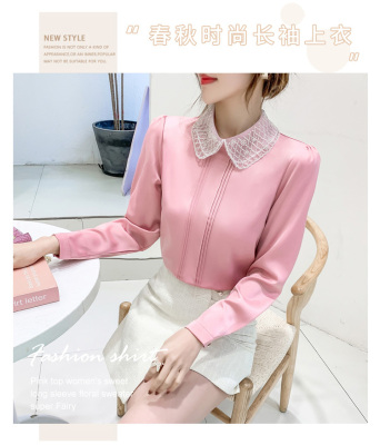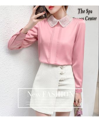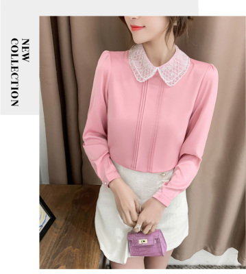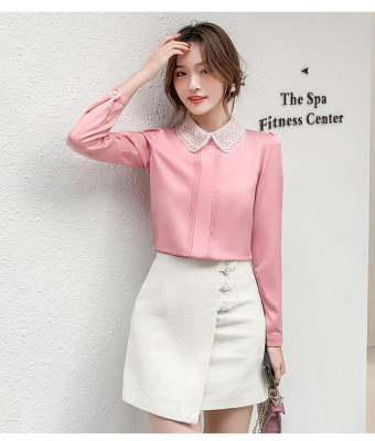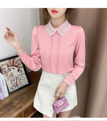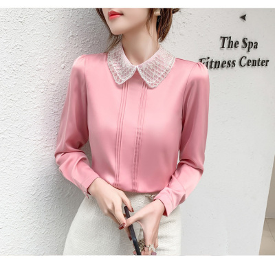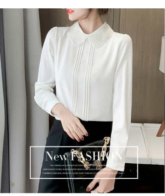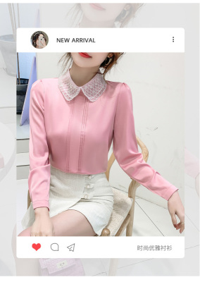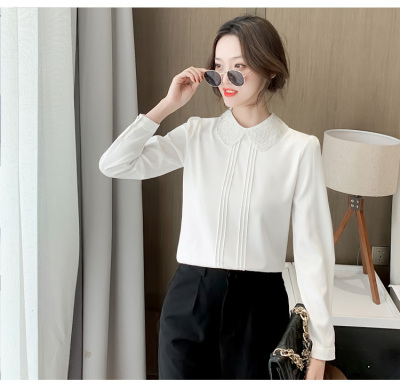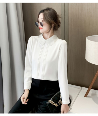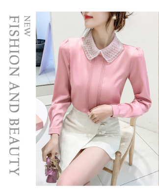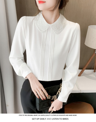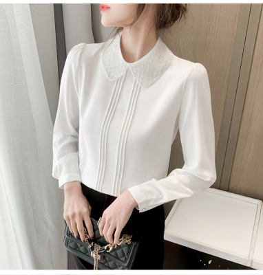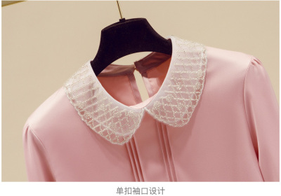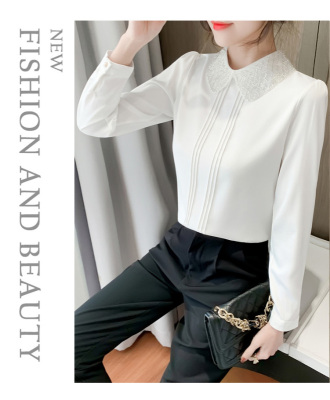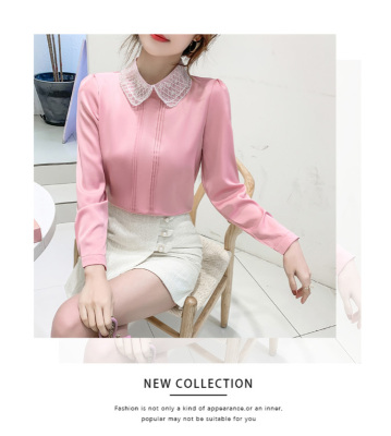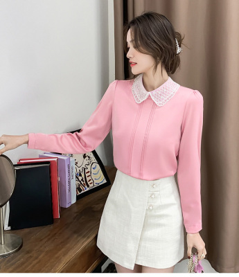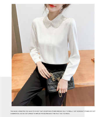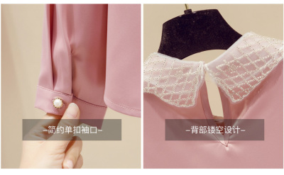 Real time chiffon shirt girl baby collar spring nail bead Top Blouse design temperament shirt