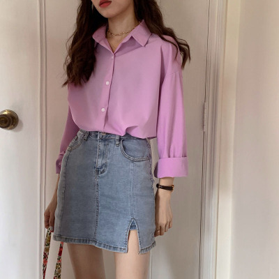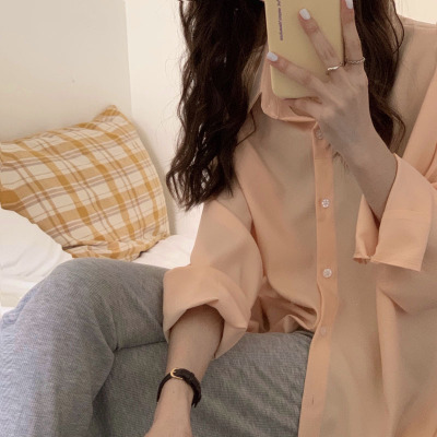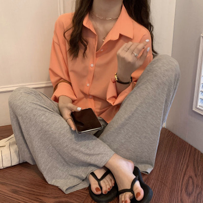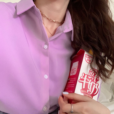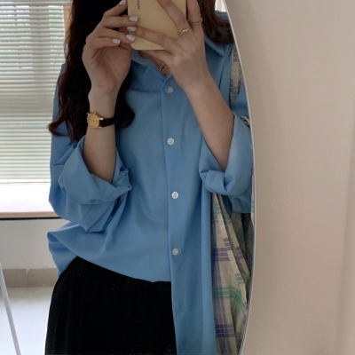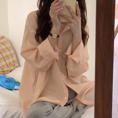 Real price real shot Korean version loose skin long sleeve top women's design sense niche shirt
