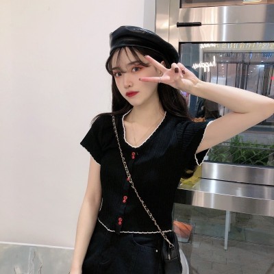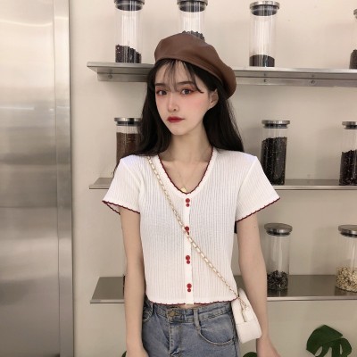 Summer wear new slim, witty, open navel short design feeling small fresh short sleeve T-shirt girl student